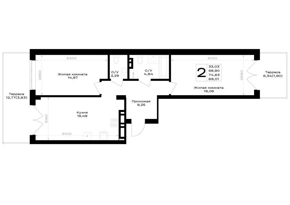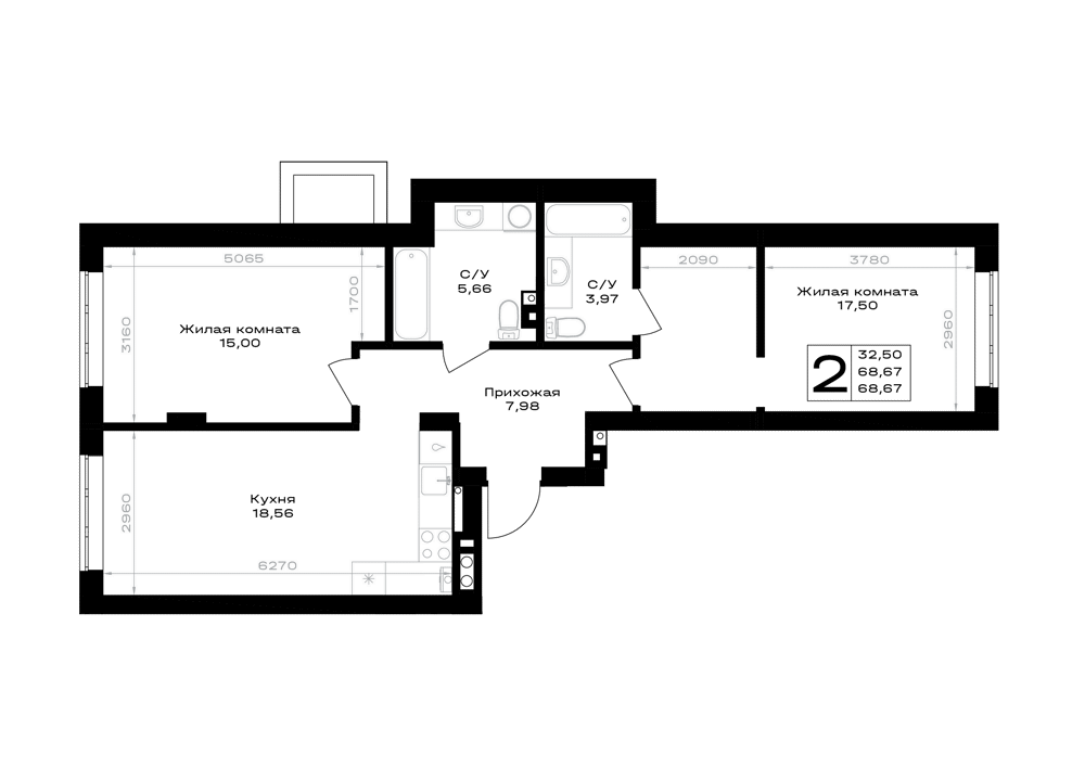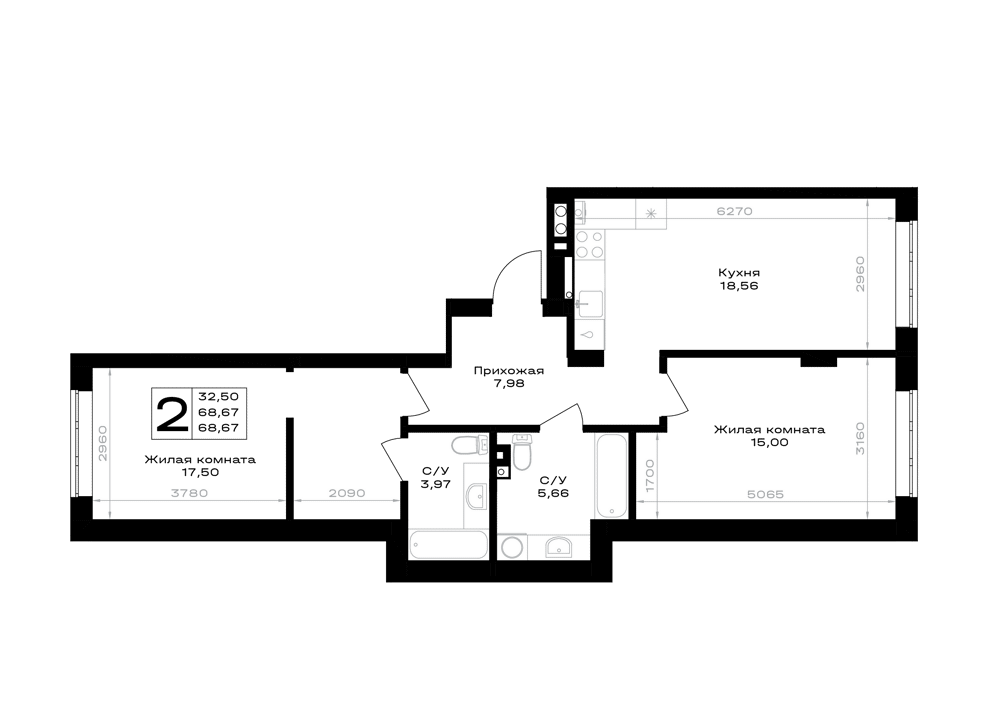 2-комнатная (68.67м2)