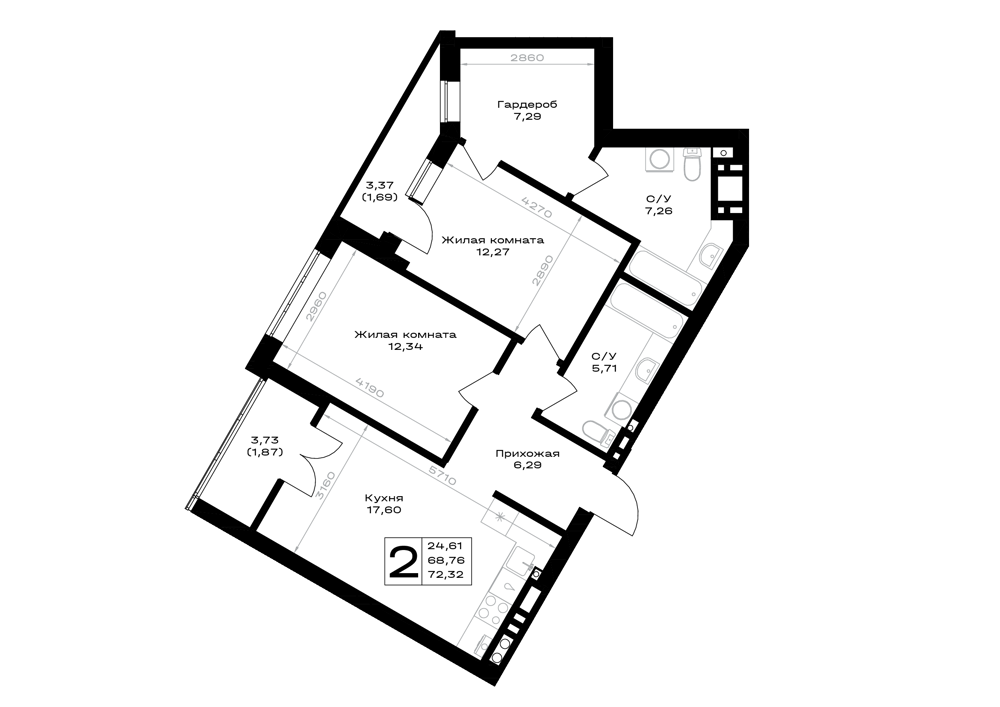 2-комнатная (72.32м2)