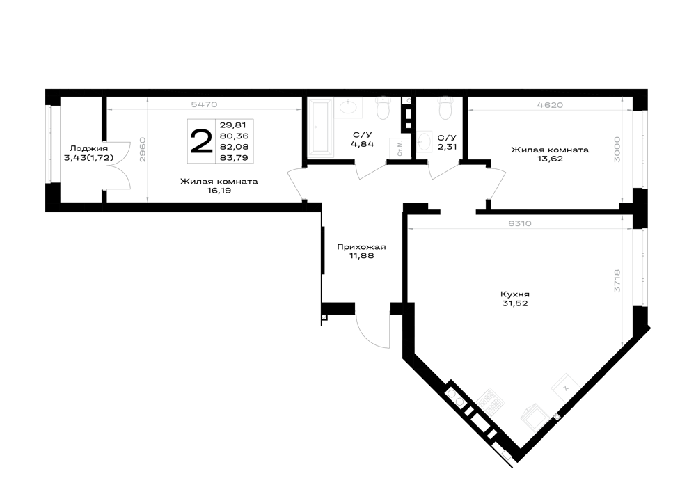 2-комнатная (82.08м2)