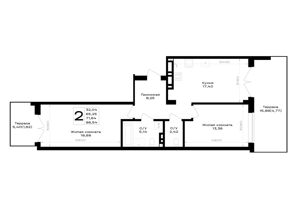 2-комнатная (71.64м2)
