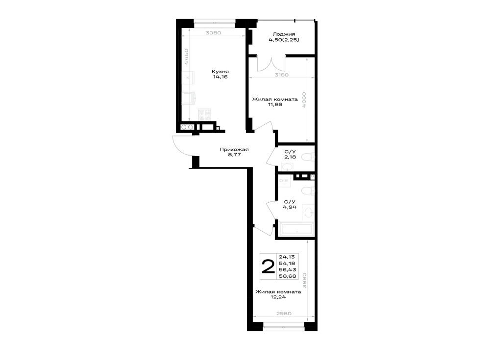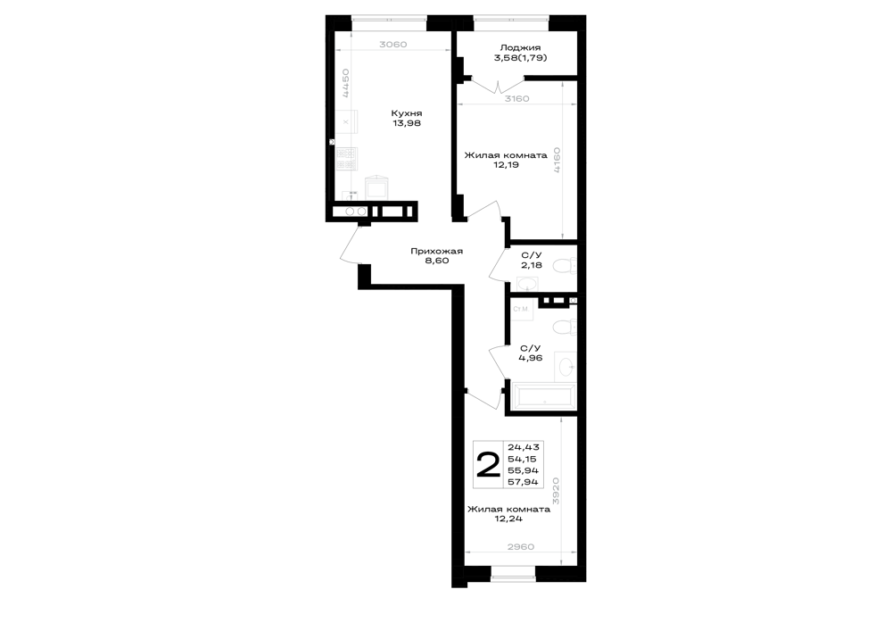 2-комнатная (55.94м2)