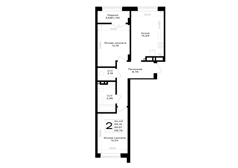 2-комнатная (55.25м2)
