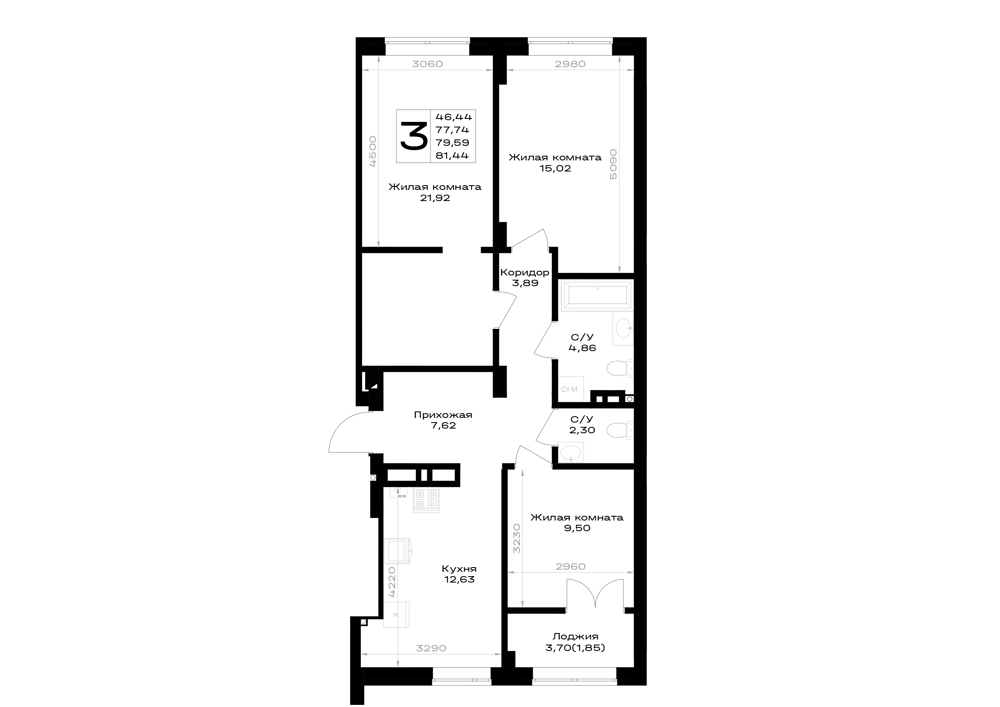 3-комнатная (79.6м2)