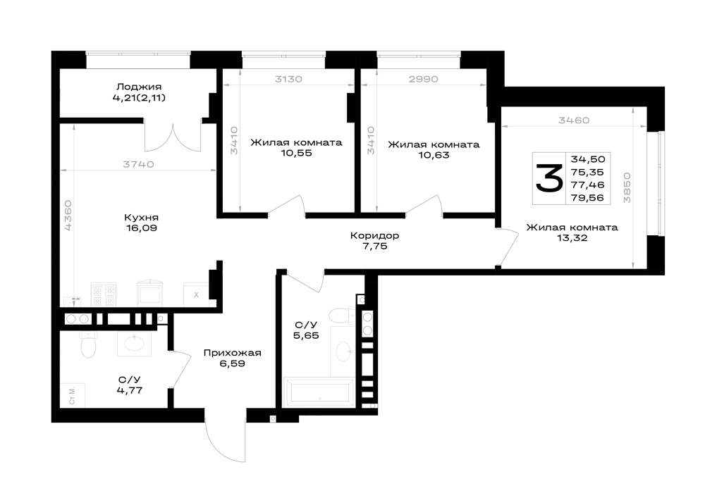 3-комнатная (79.58м2)