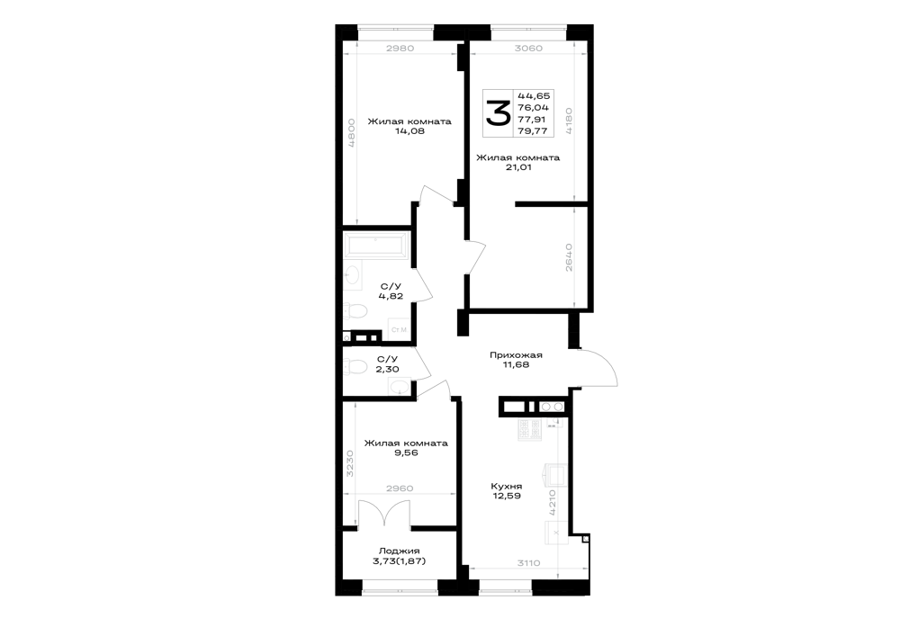 3-комнатная (77.91м2)