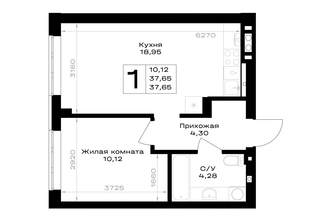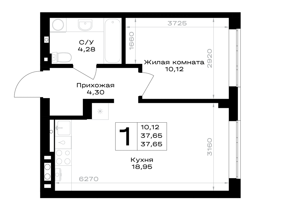 Евро 1-комнатная (37.65м2)