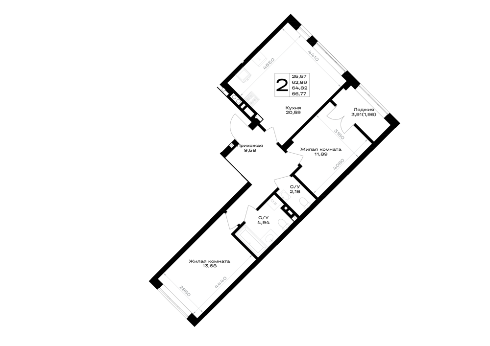 Евро 2-комнатная (64.82м2)