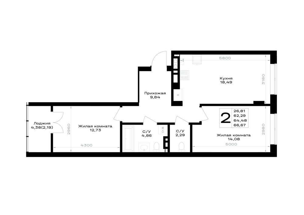 Евро 2-комнатная (64.48м2)