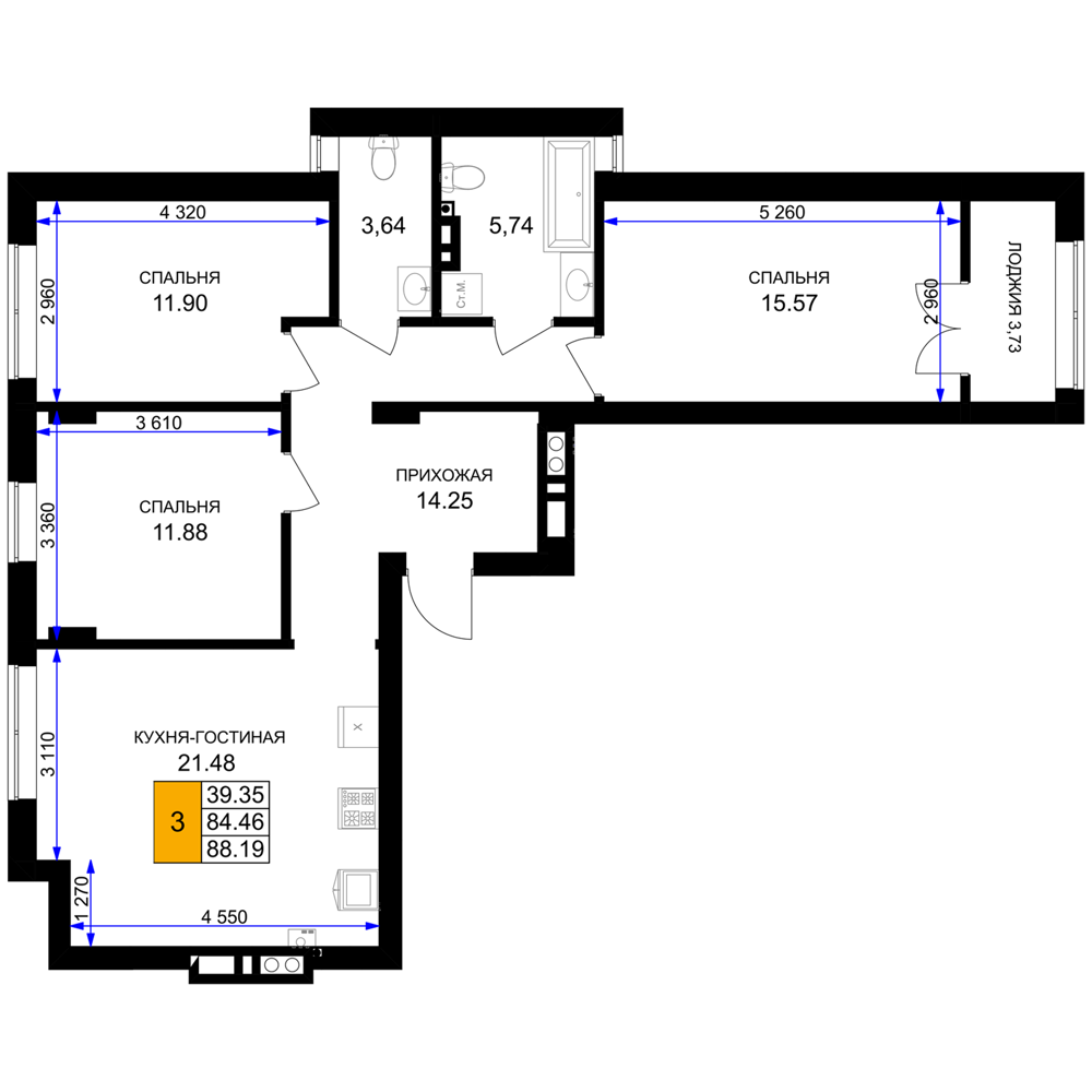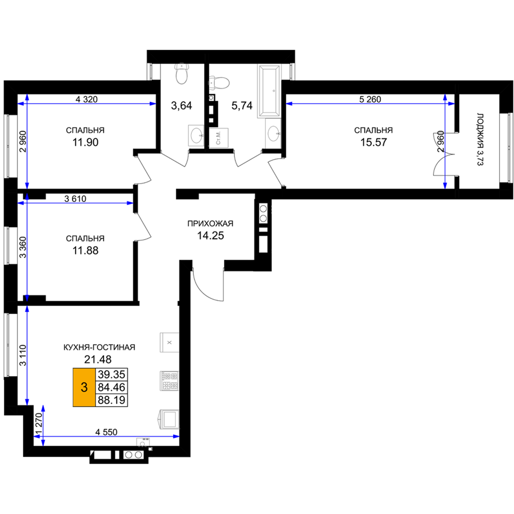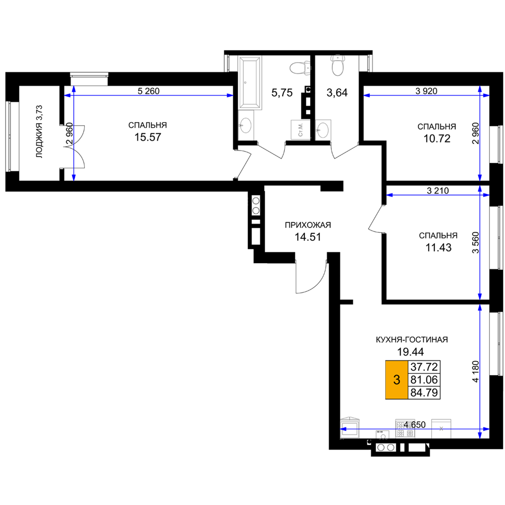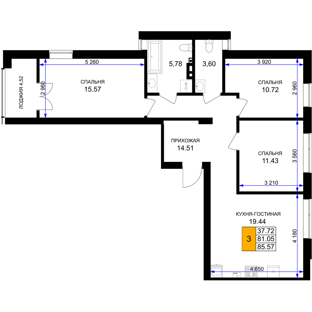 Евро трехкомнатные квартиры в ЖК «Включи»