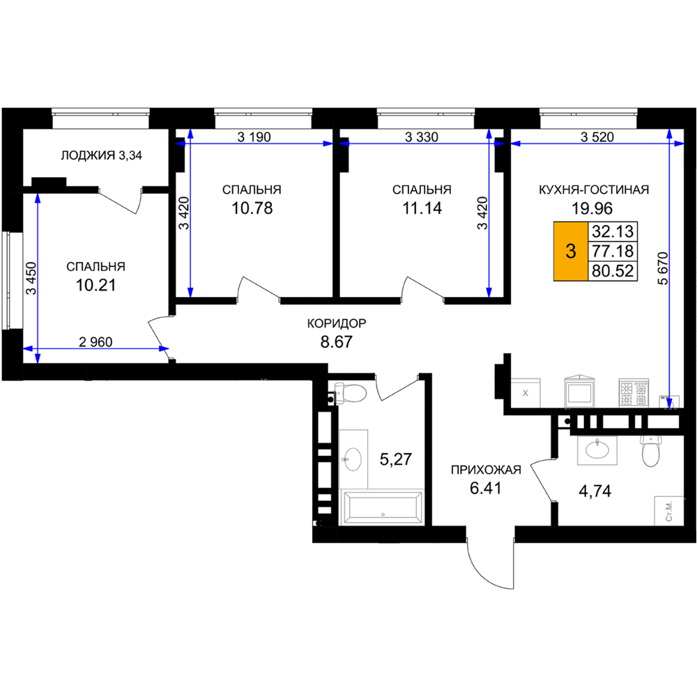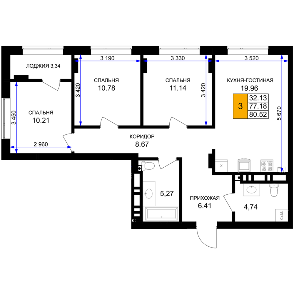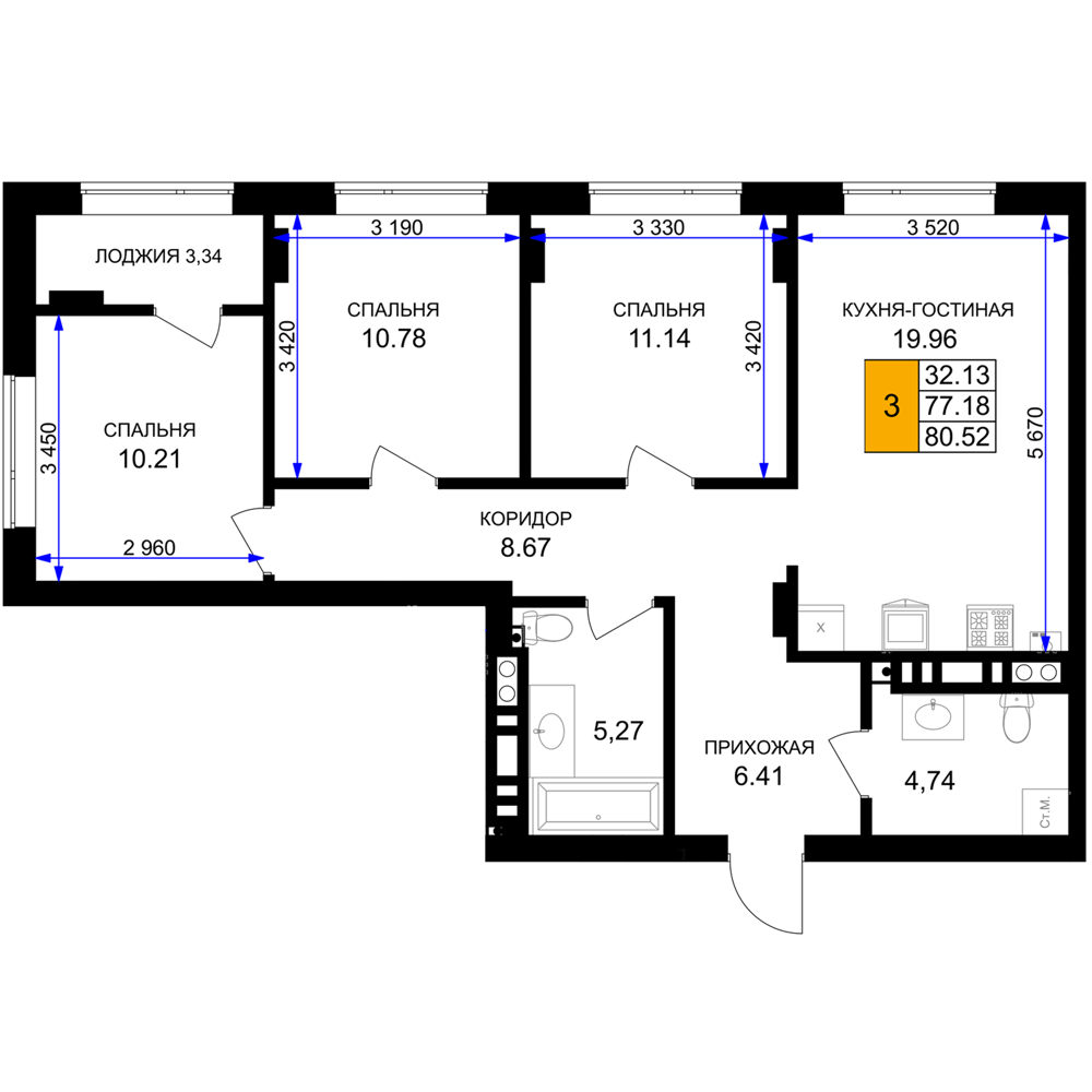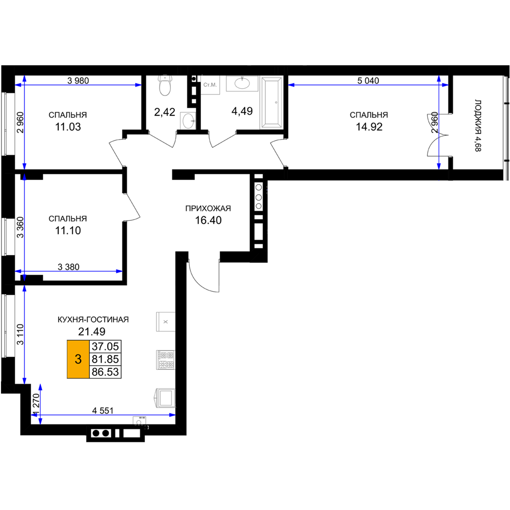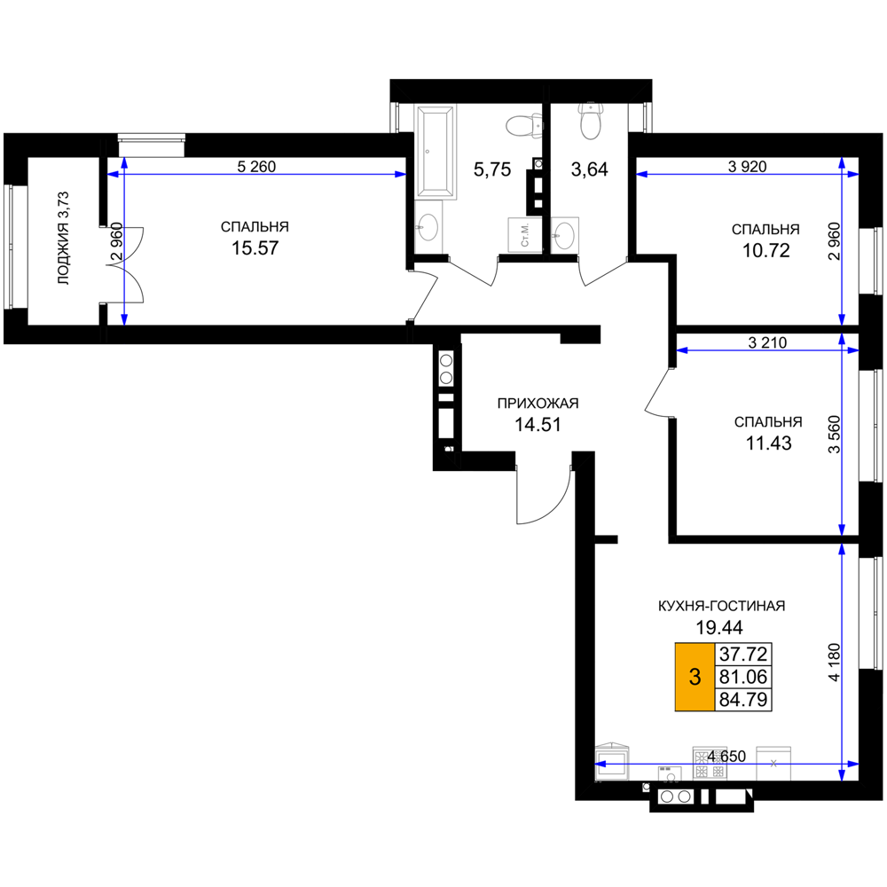 Евро трехкомнатные квартиры в ЖК «Включи»