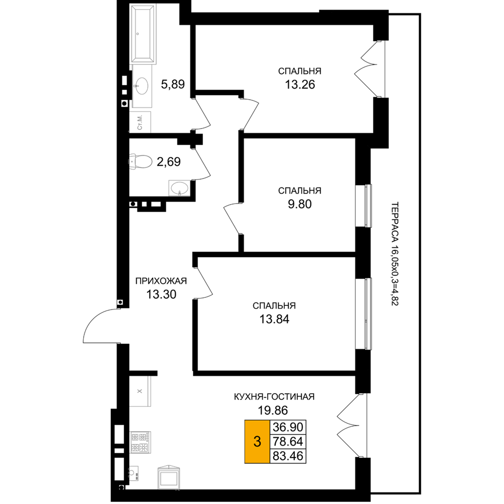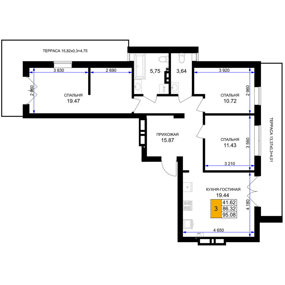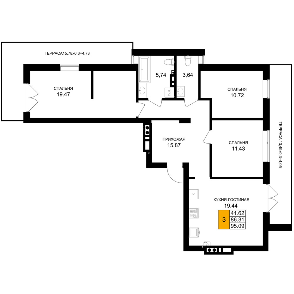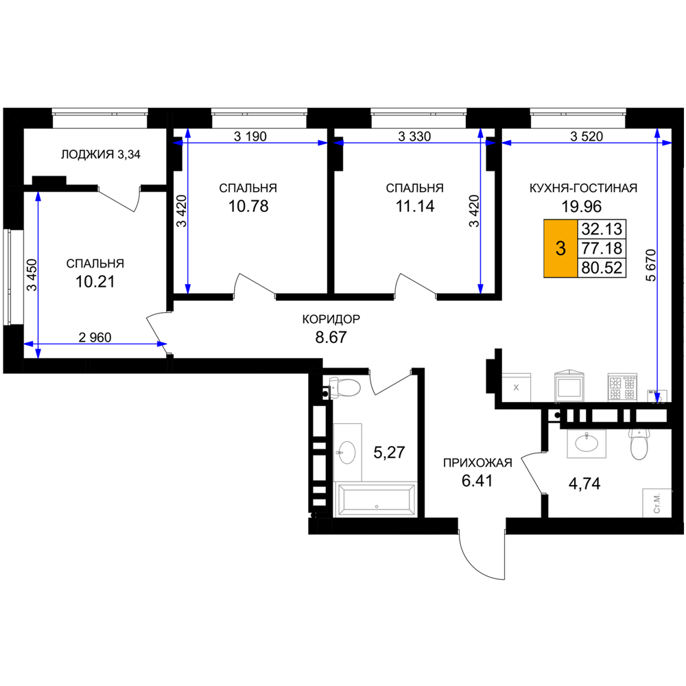 Евро трехкомнатные квартиры в ЖК «Включи»