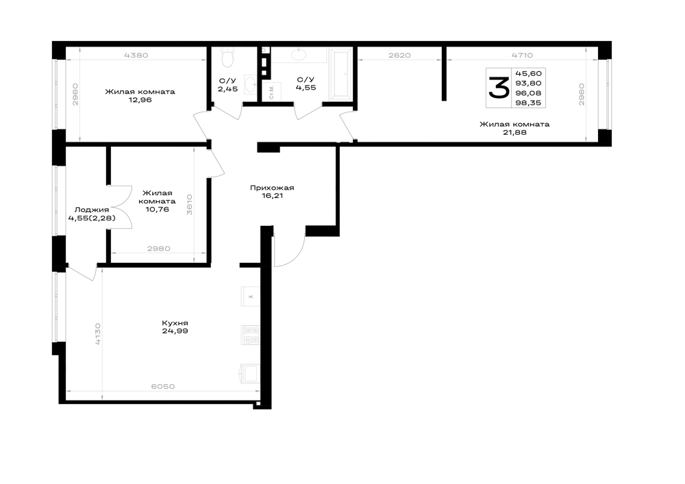Евро трехкомнатные квартиры в ЖК «Включи»