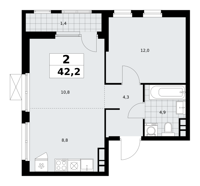 2-комнатная (42.2м2)