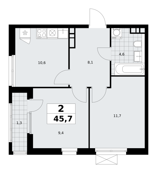 2-комнатная (45.7м2)