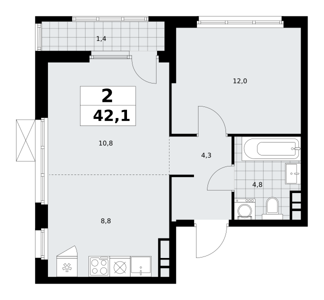 2-комнатная (42.1м2)