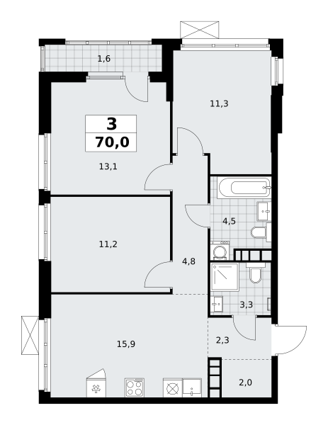 Трехкомнатные квартиры в ЖК Южные сады
