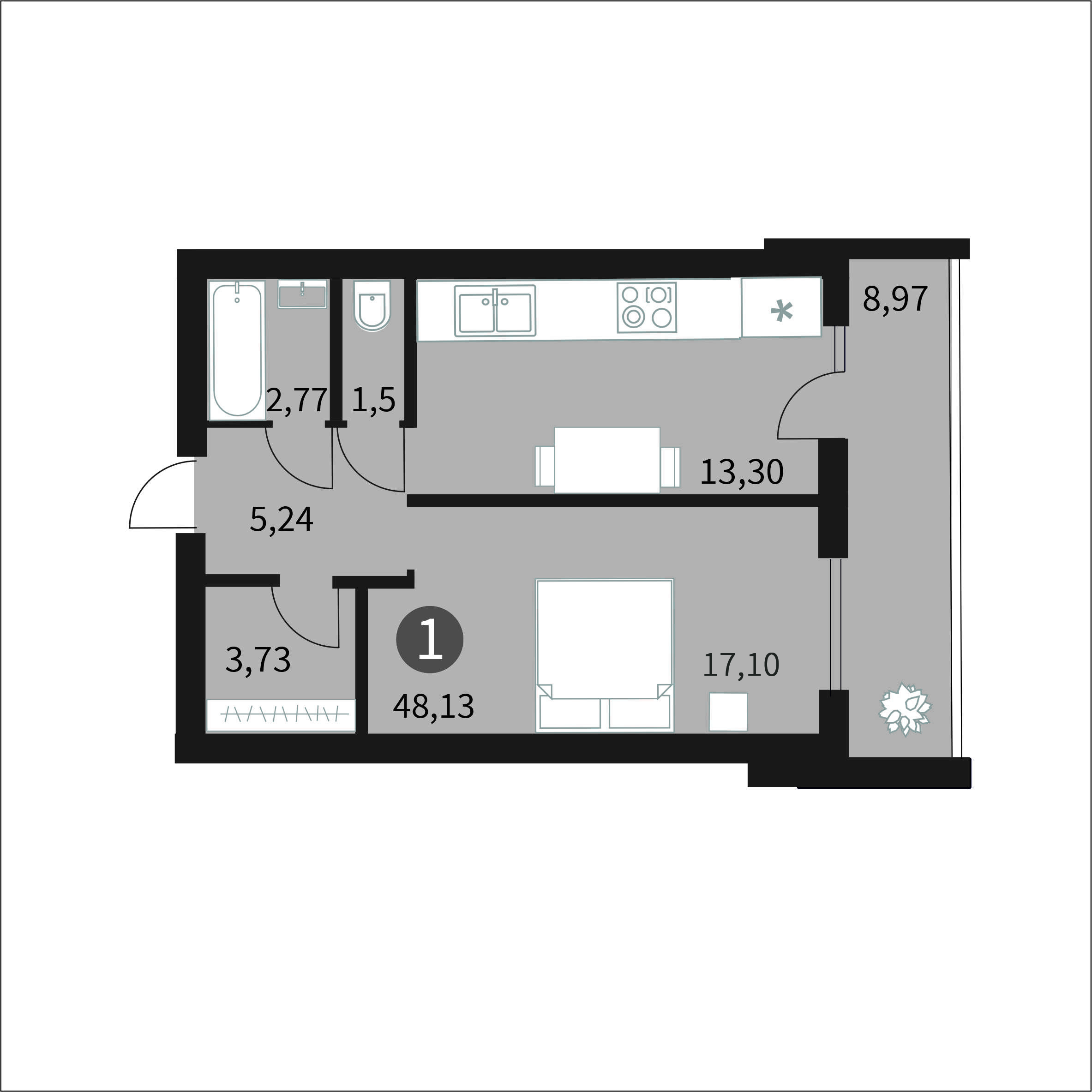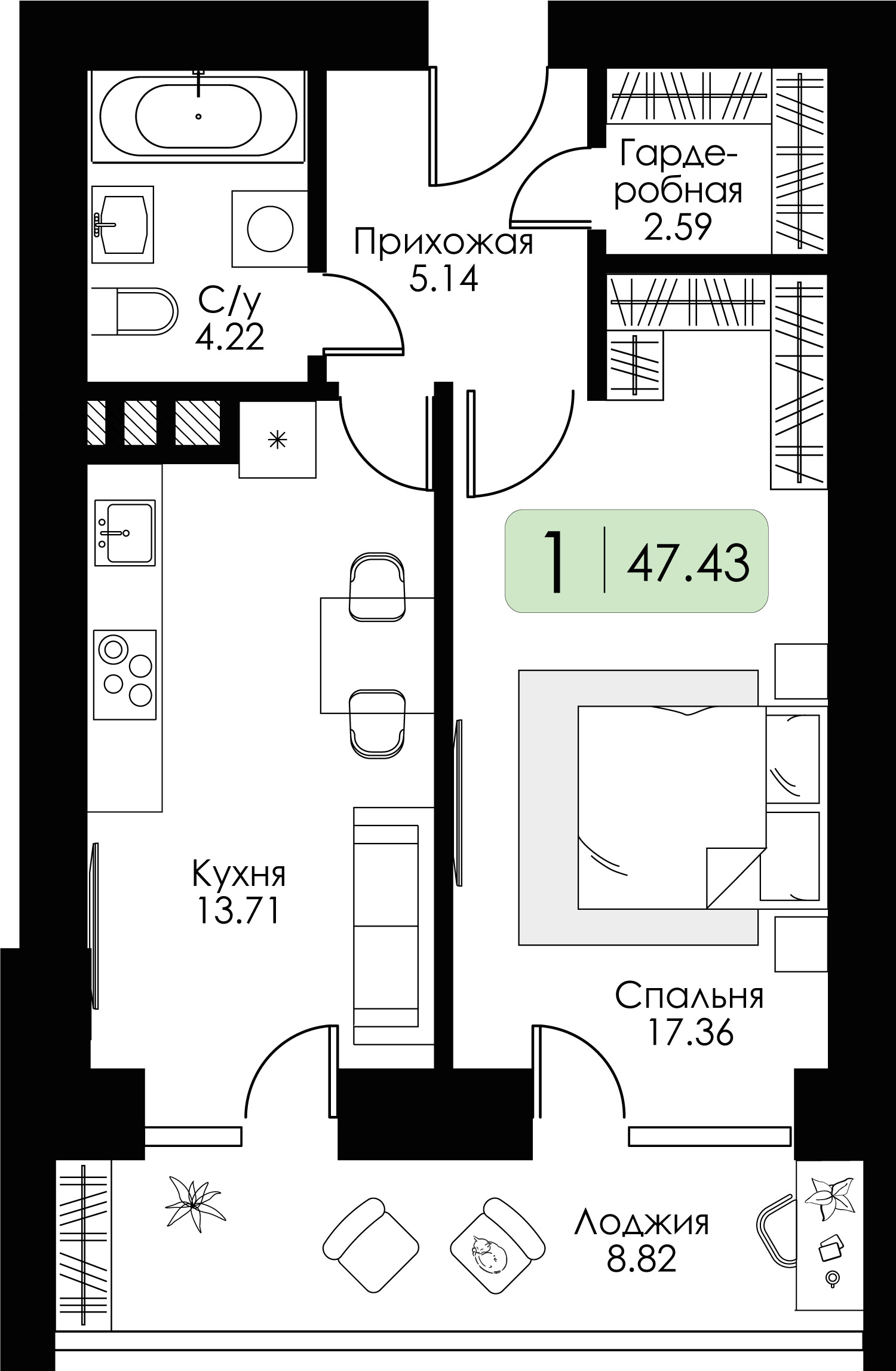 1-комнатная (47.43м2)