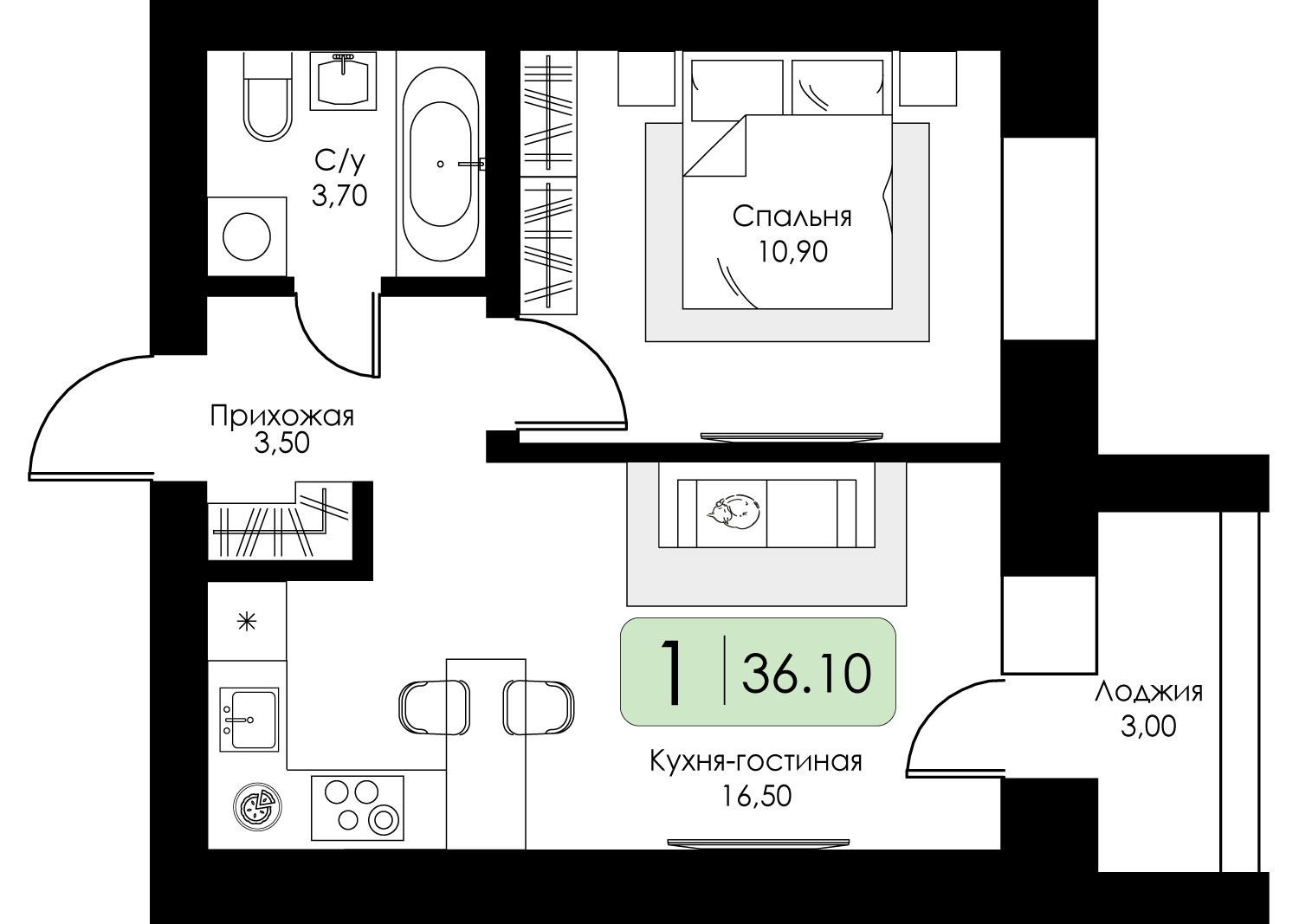 Евро однокомнатные квартиры в ЖК Загорье