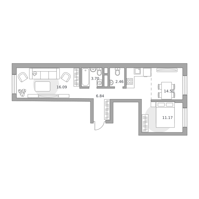 Покупателям доступно большое количество разнообразных планировок: от небольших уютных студий до просторных трехкомнатных. Клиенты могут приобрести жилье сразу же с готовой отделкой.