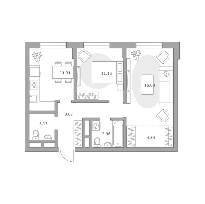 Покупателям доступно большое количество разнообразных планировок: от небольших уютных студий до просторных трехкомнатных. Клиенты могут приобрести жилье сразу же с готовой отделкой.