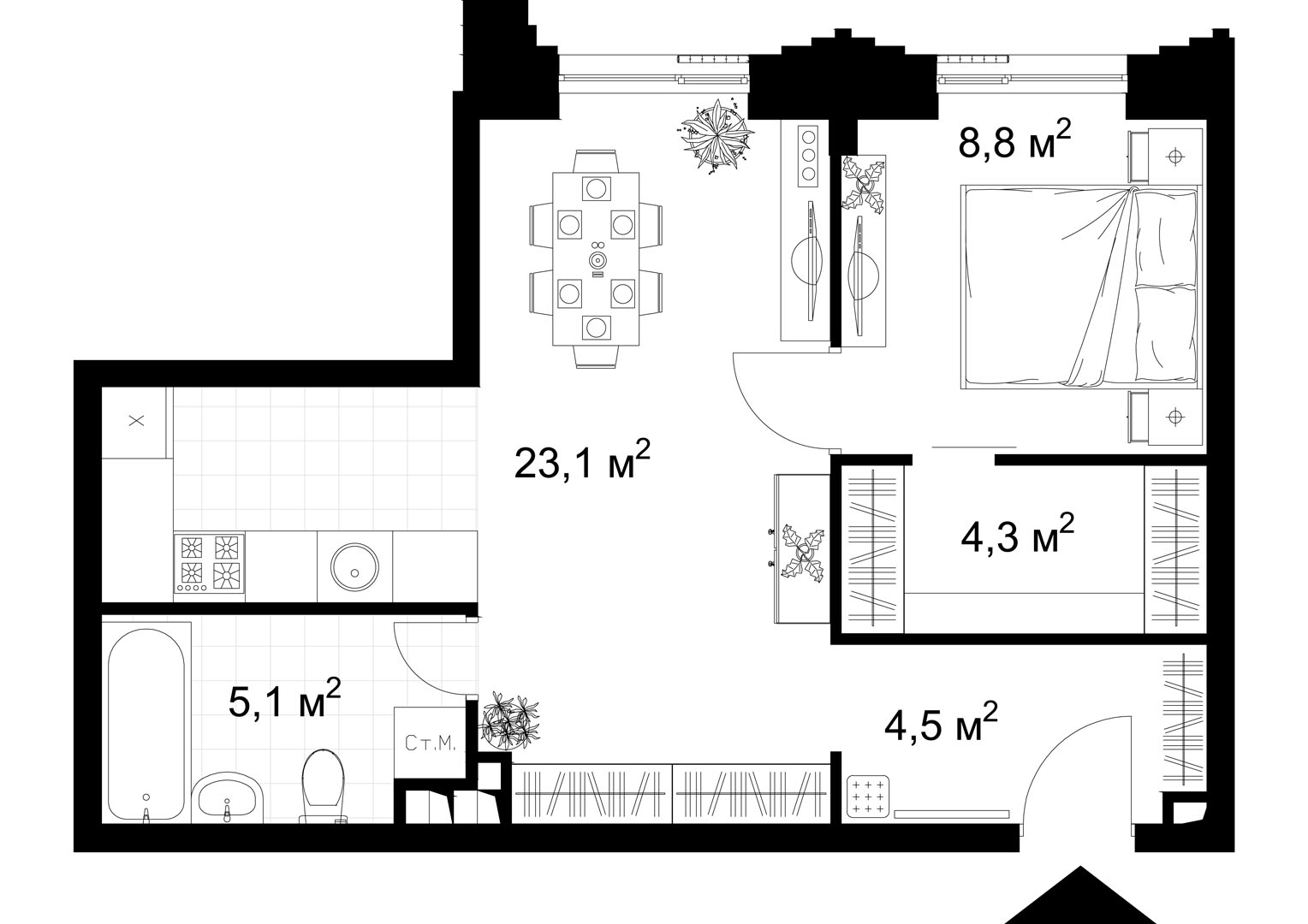 1-комнатная (45.8м2)