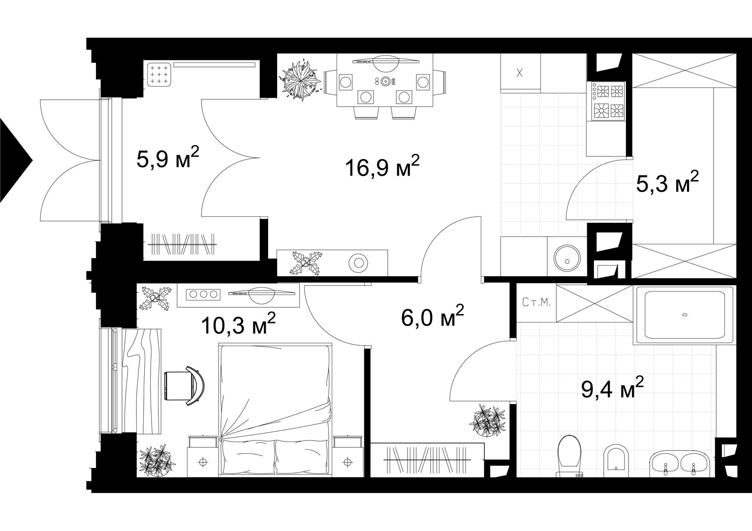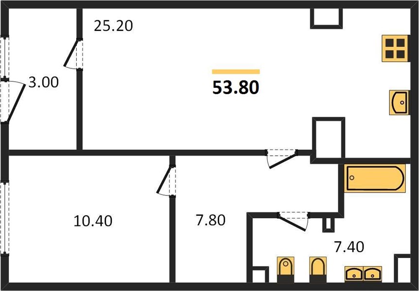 1-комнатная (53.8м2)