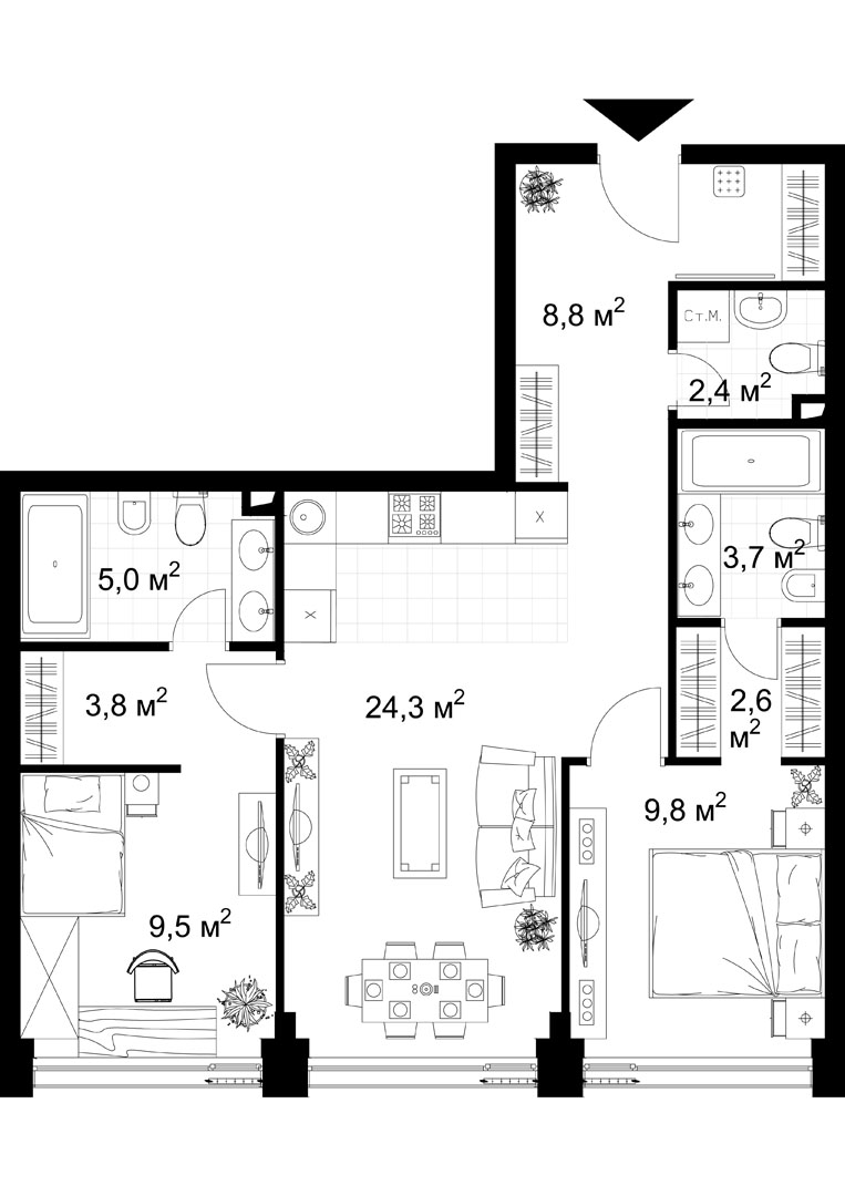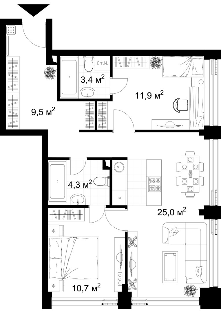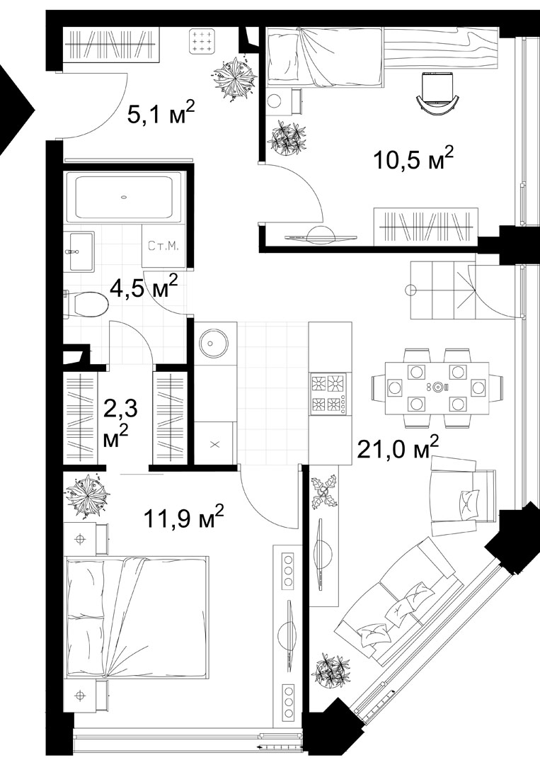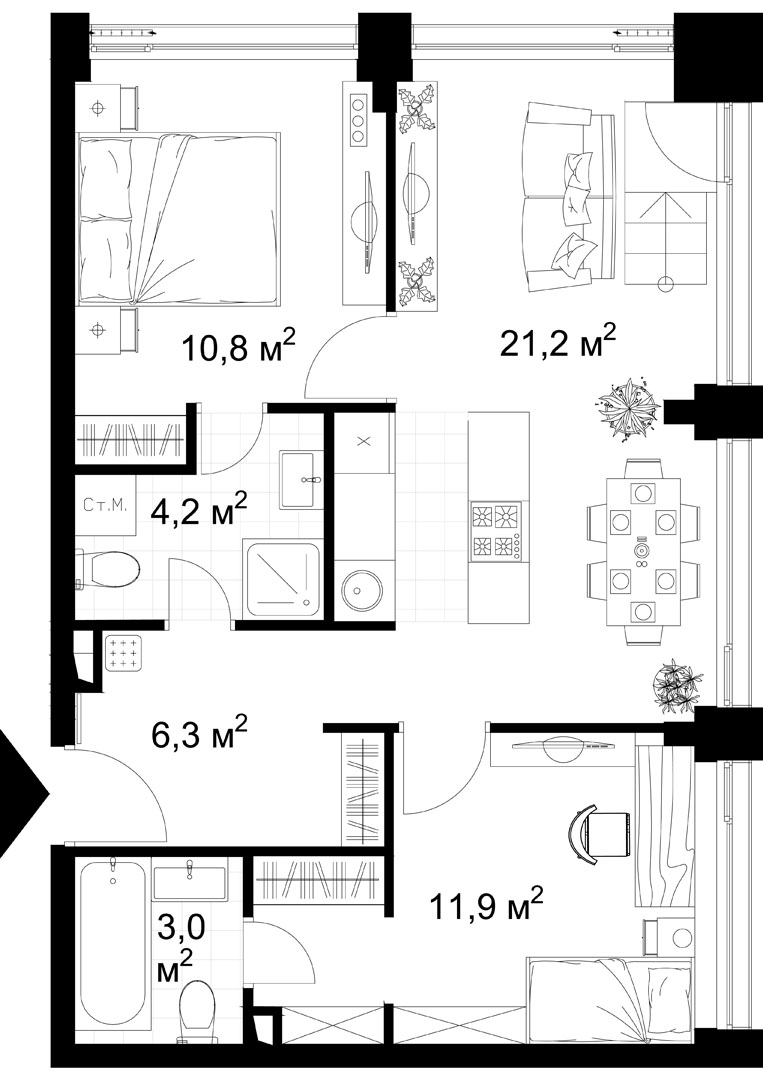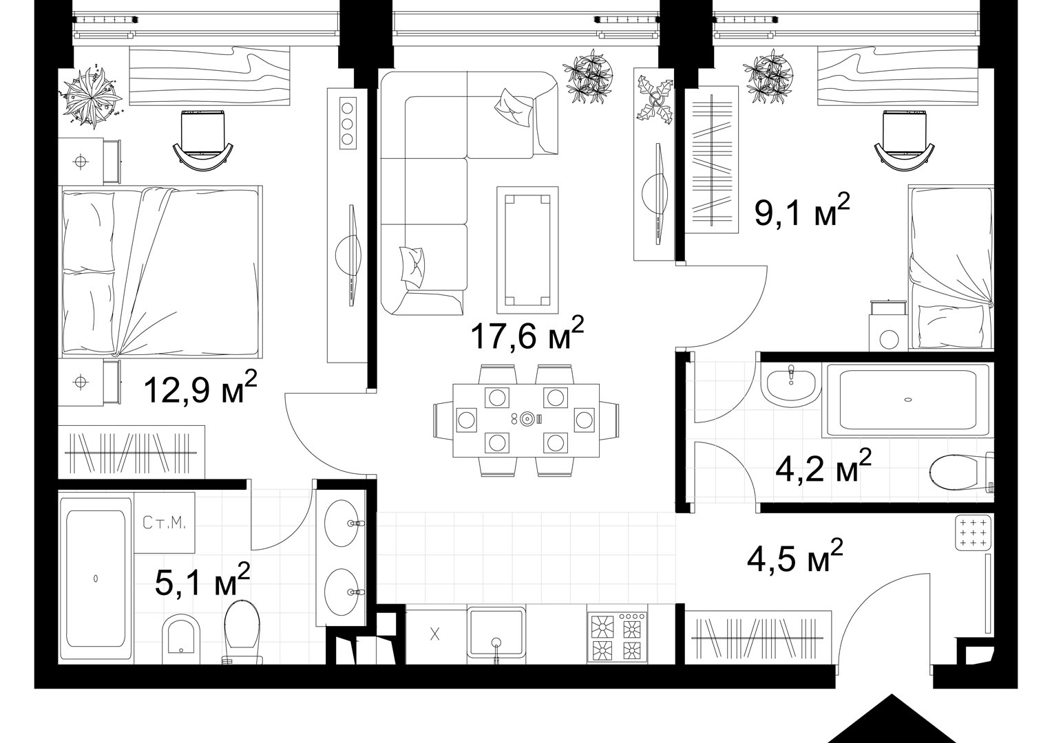 Двухкомнатные квартиры в ЖК «KAZAKOV Grand Loft (Казакова, 7)»