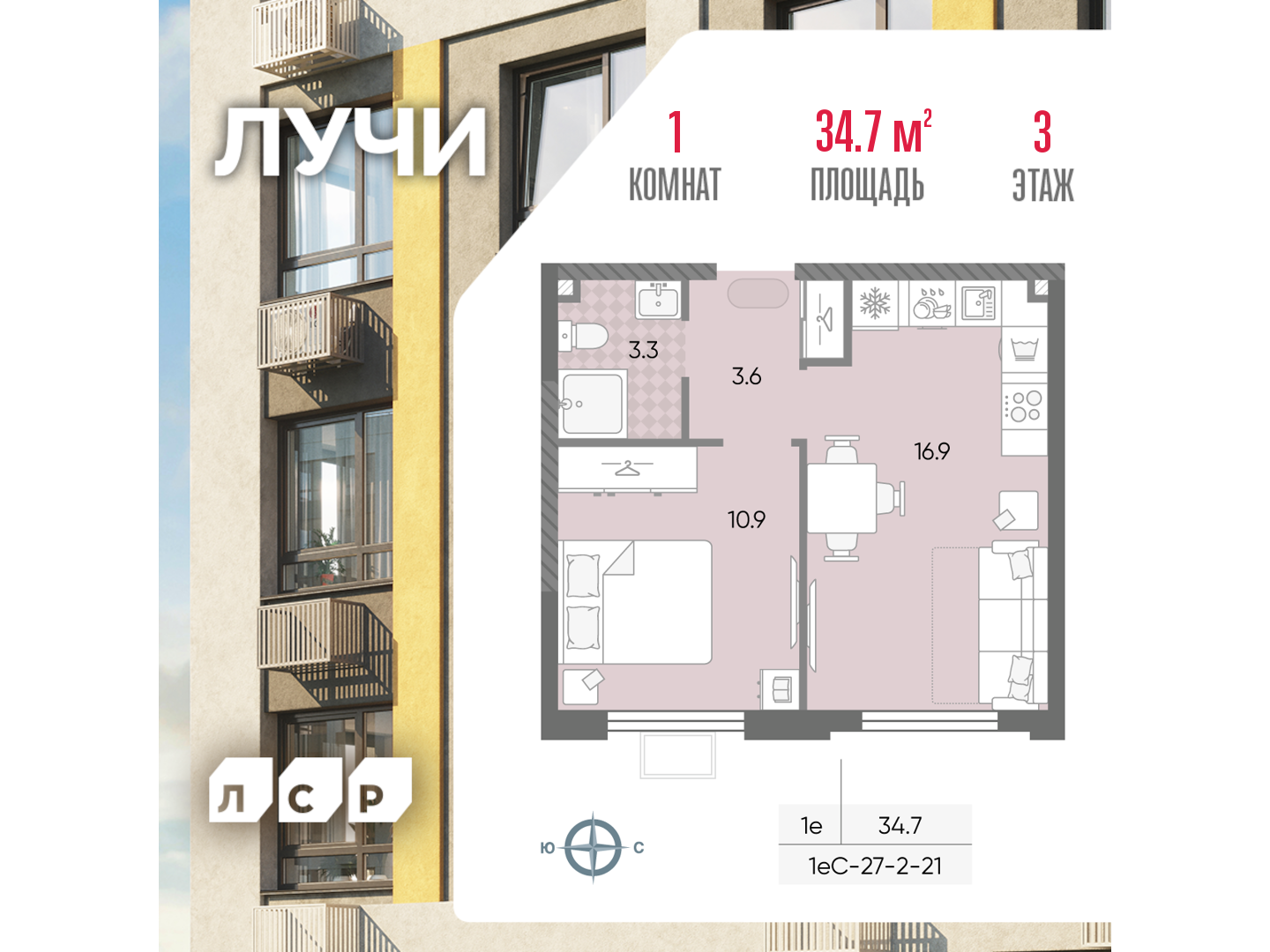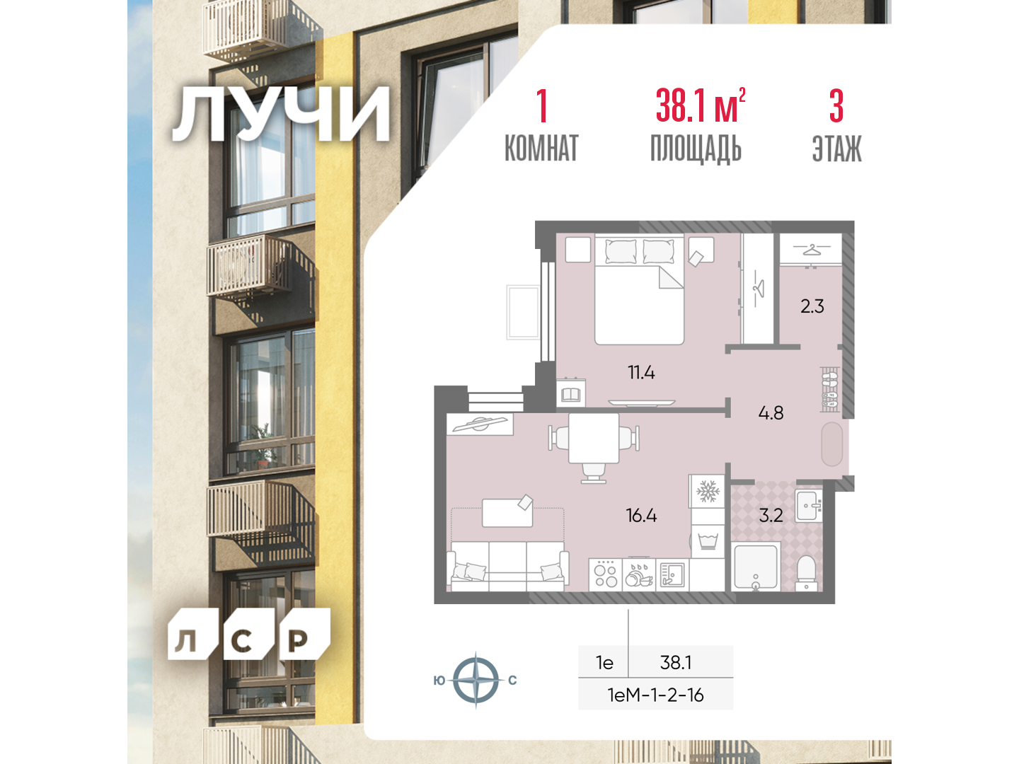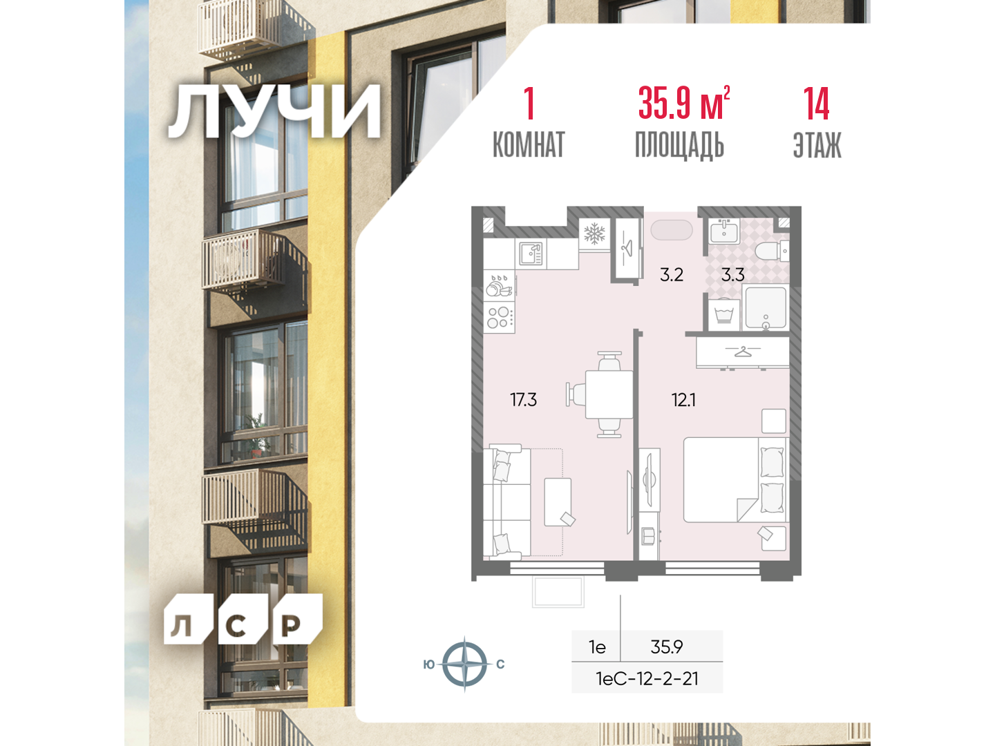 Однокомнатные квартиры в ЖК Лучи