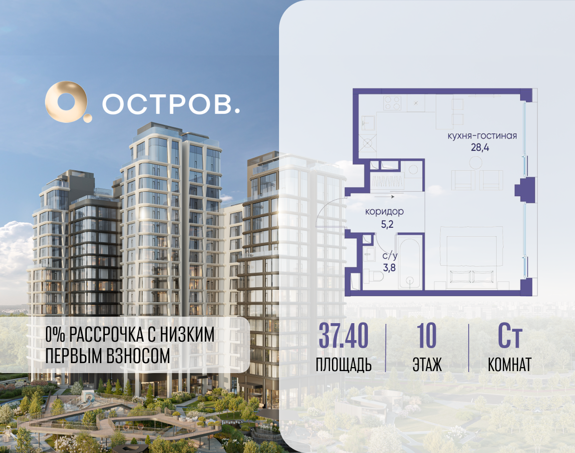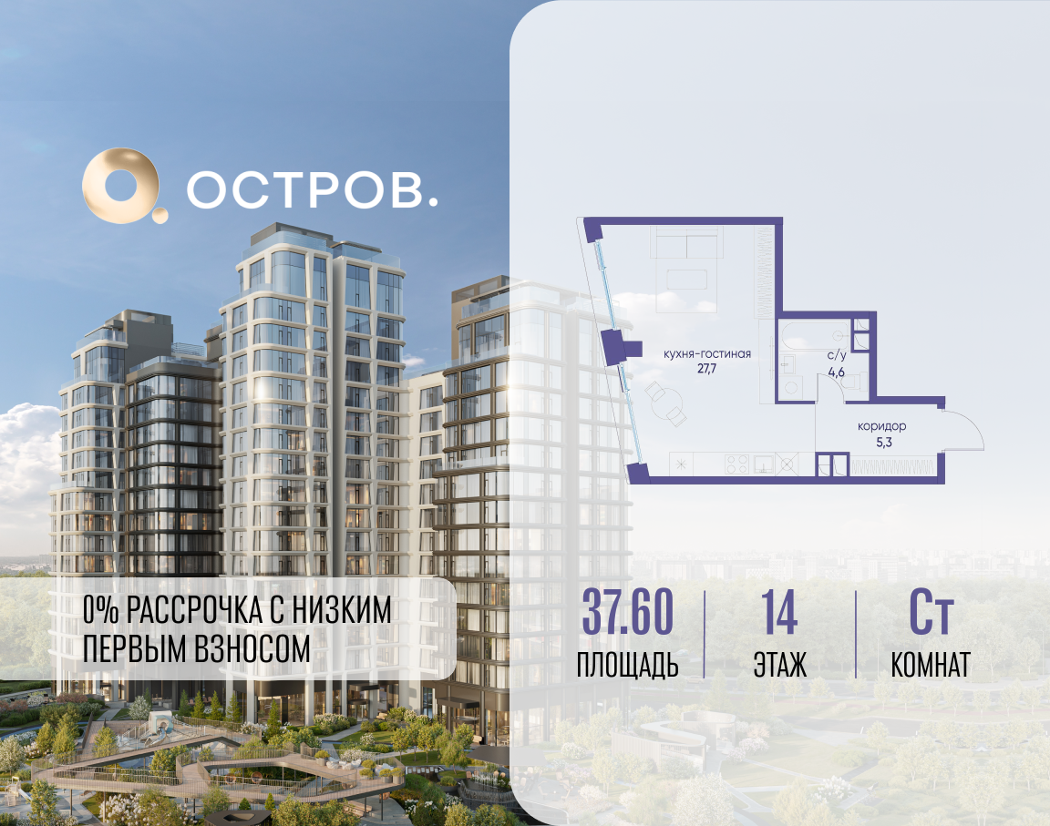 В «Острове» предлагается широкий выбор квартир: от небольших уютных студий до элитных резиденций. Также есть пентхаусы и квартиры с террасами, угловым остеклением, окнами в ванных, возможностью установить камин.
