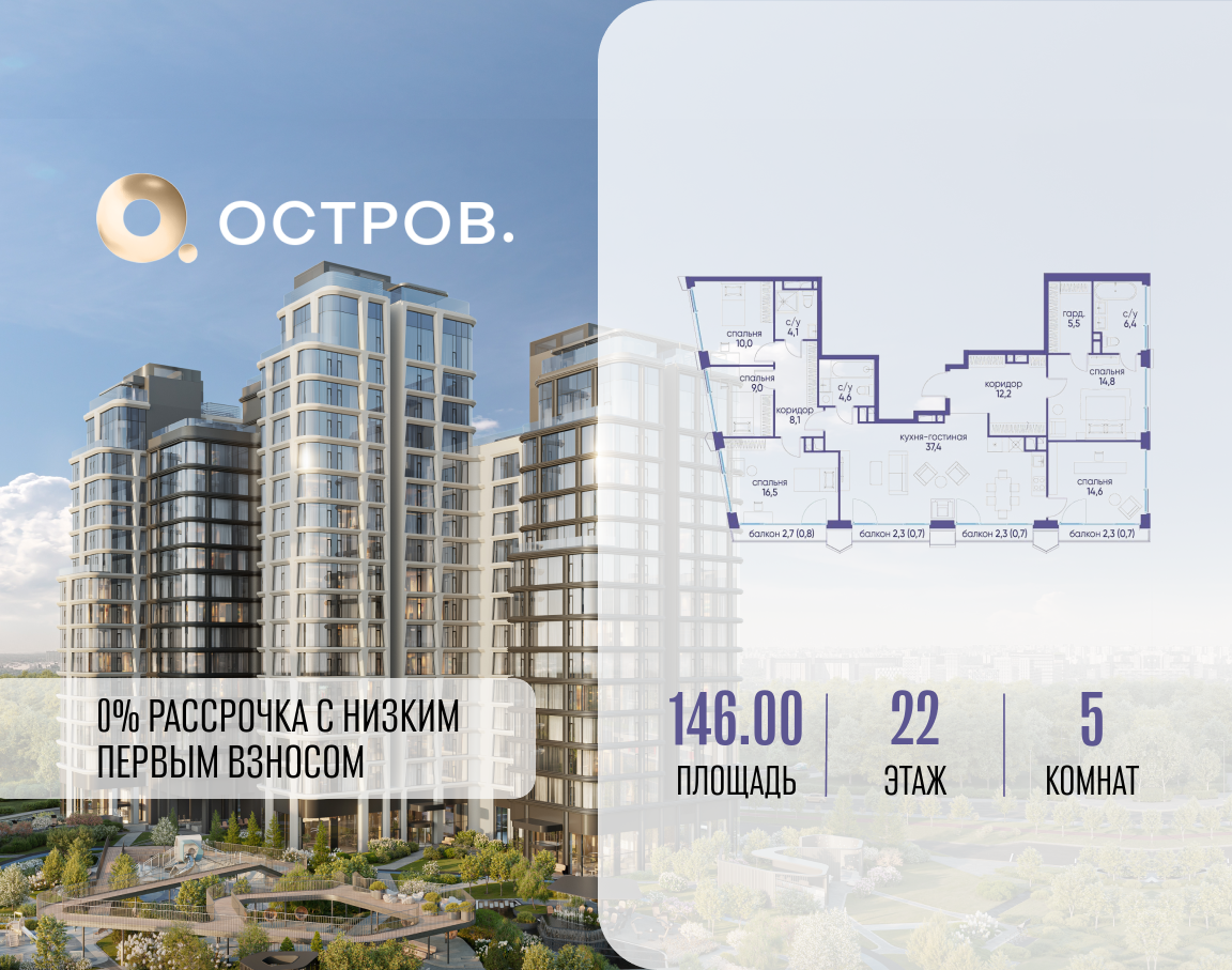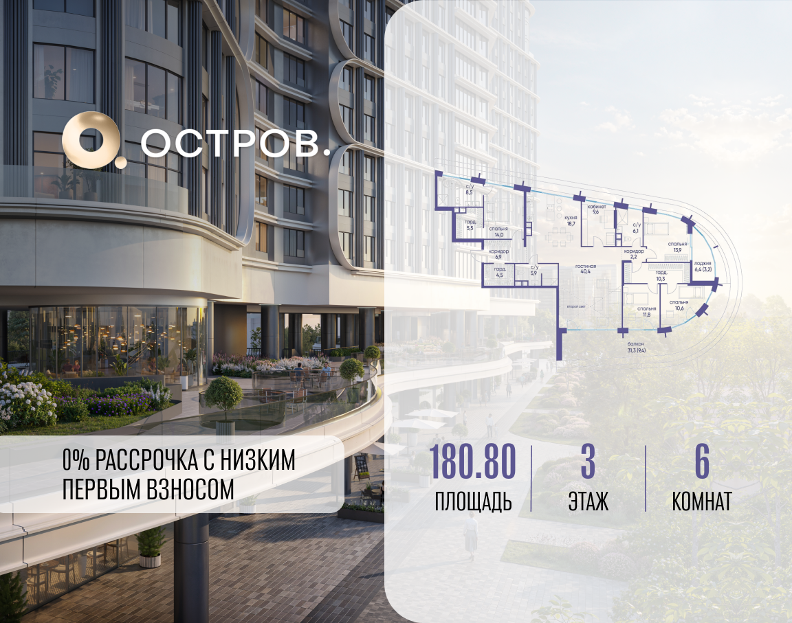 В «Острове» предлагается широкий выбор квартир: от небольших уютных студий до элитных резиденций. Также есть пентхаусы и квартиры с террасами, угловым остеклением, окнами в ванных, возможностью установить камин.