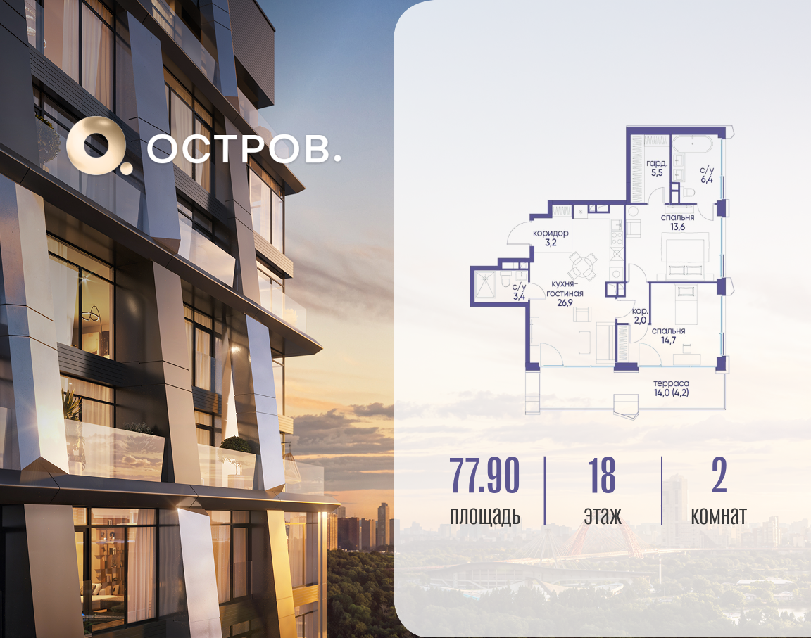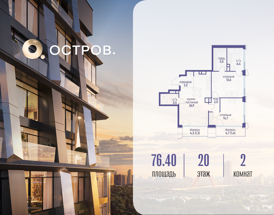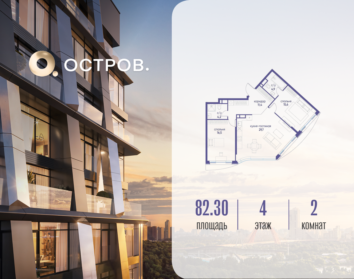 В «Острове» предлагается широкий выбор квартир: от небольших уютных студий до элитных резиденций. Также есть пентхаусы и квартиры с террасами, угловым остеклением, окнами в ванных, возможностью установить камин.