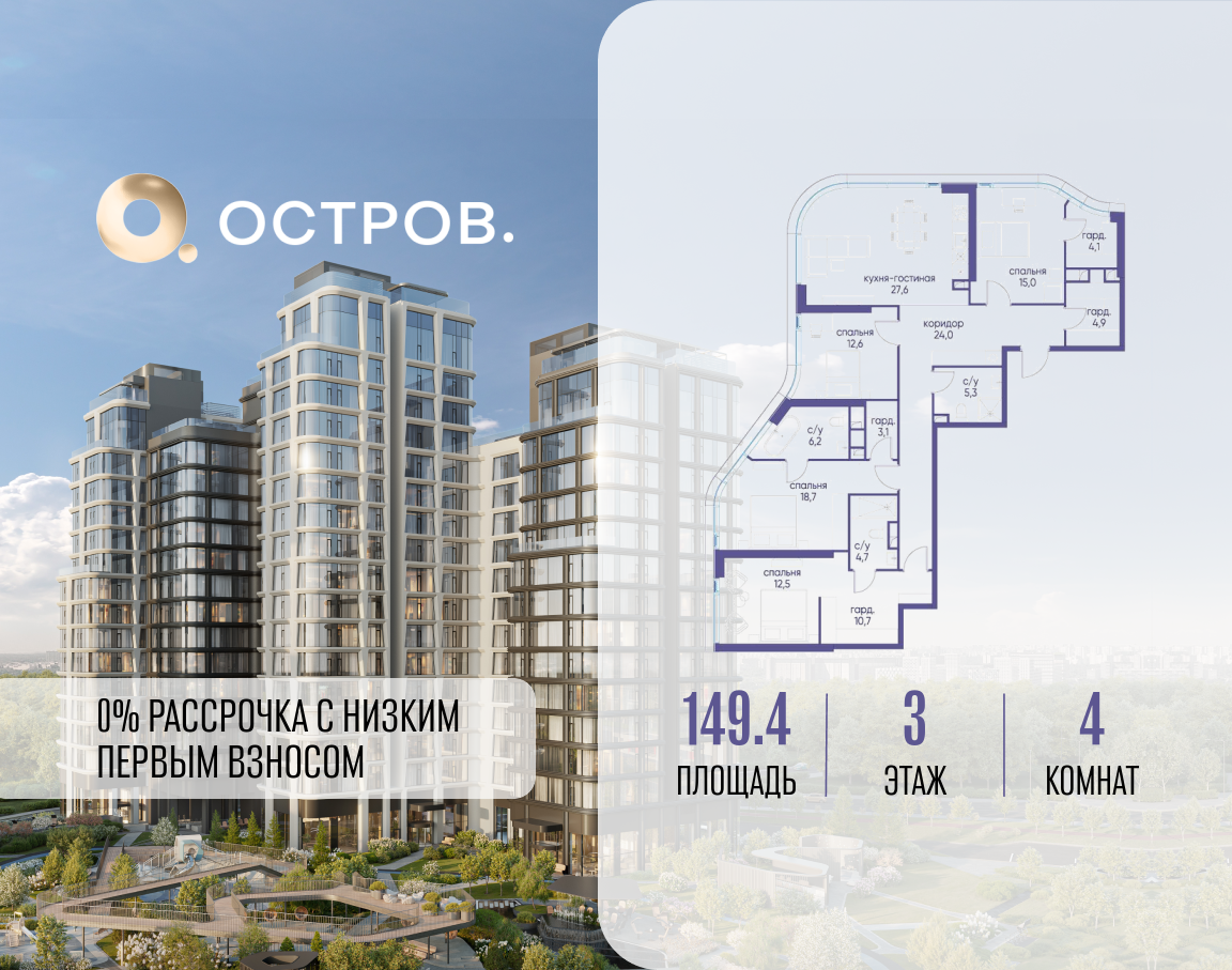 Евро четырехкомнатные квартиры в ЖК Остров