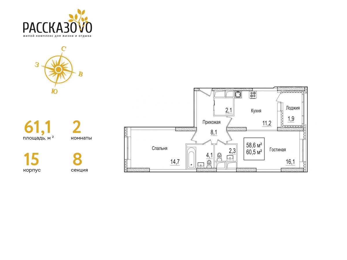 Двухкомнатные квартиры в ЖК «Рассказово»