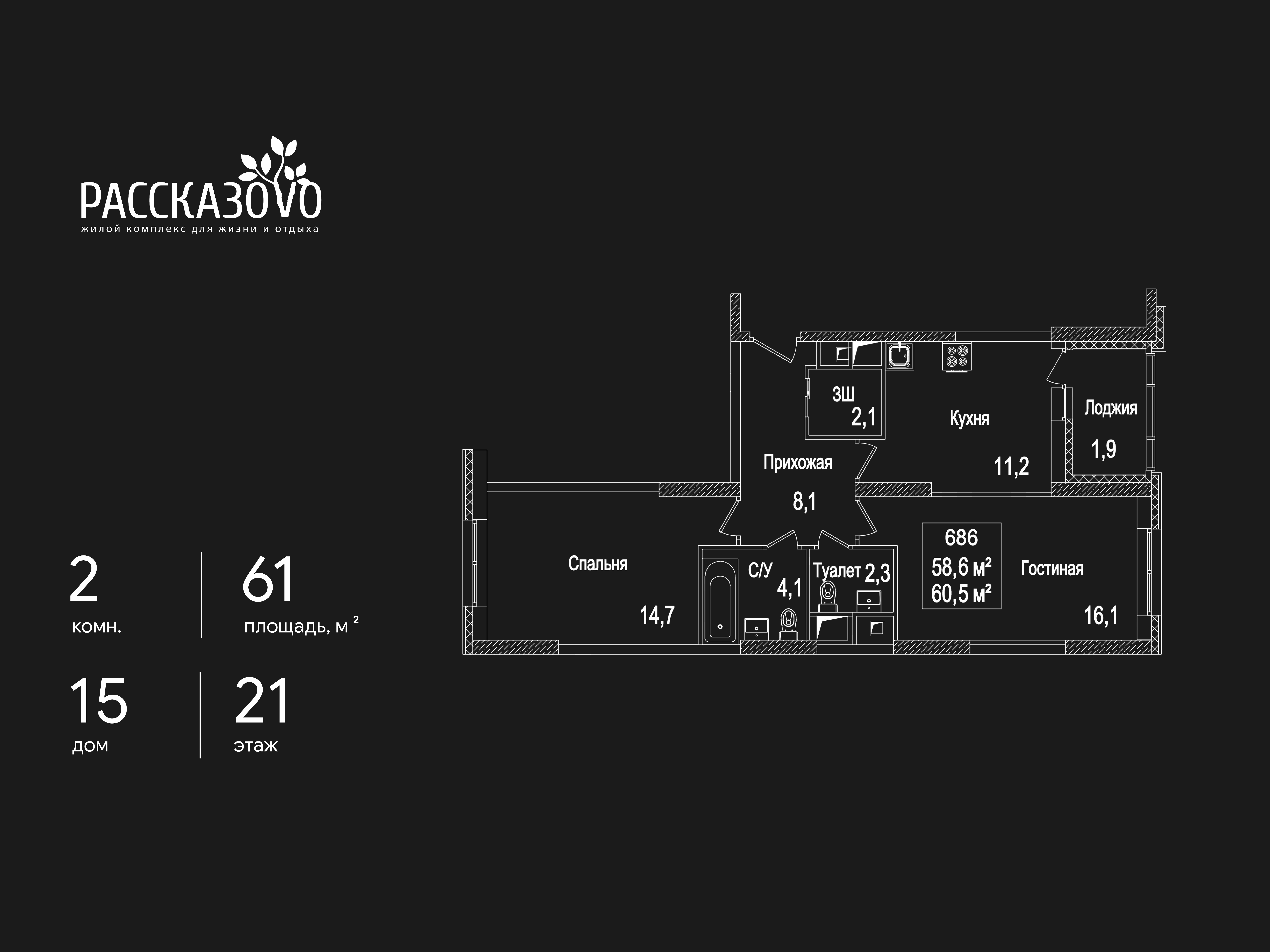Двухкомнатные квартиры в ЖК «Рассказово»
