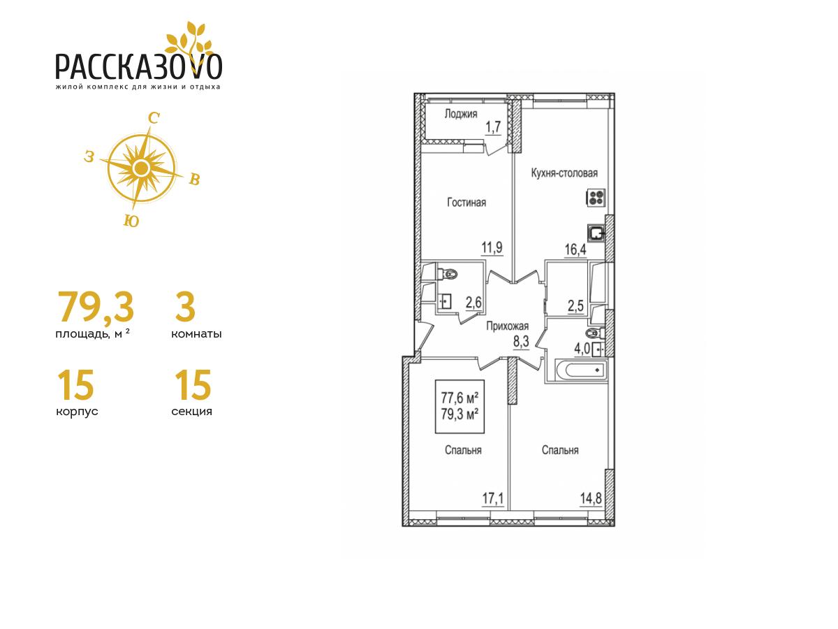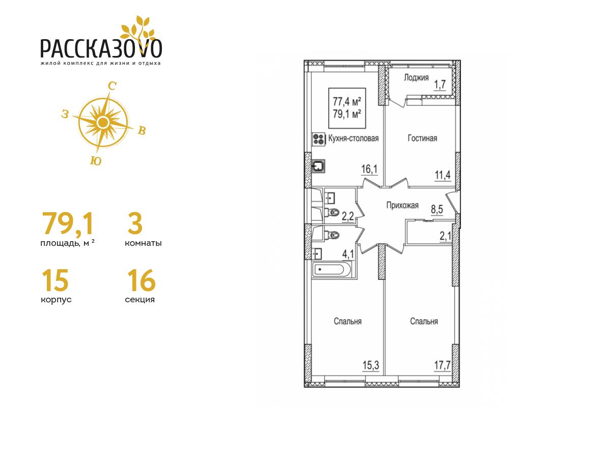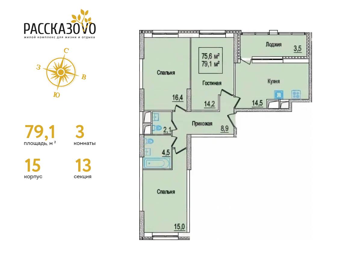 Трехкомнатные квартиры в ЖК «Рассказово»