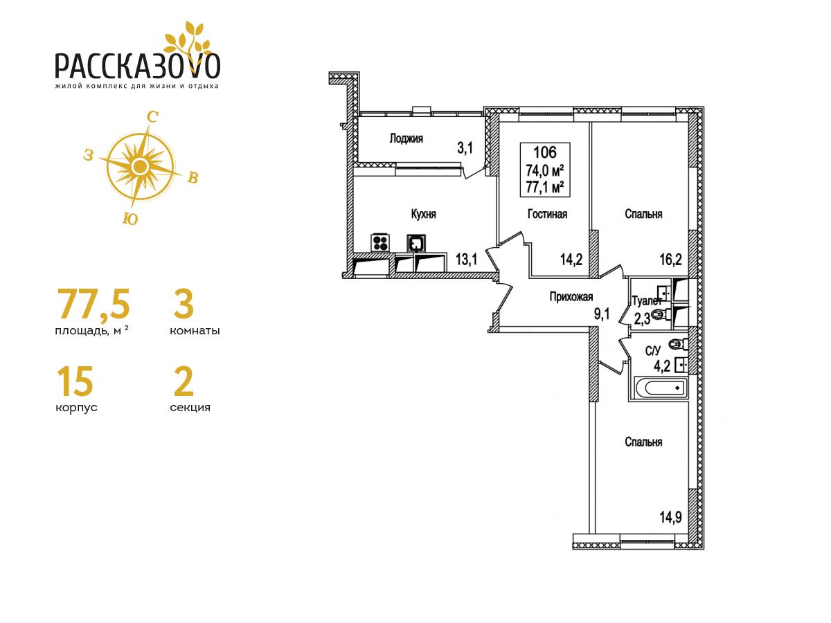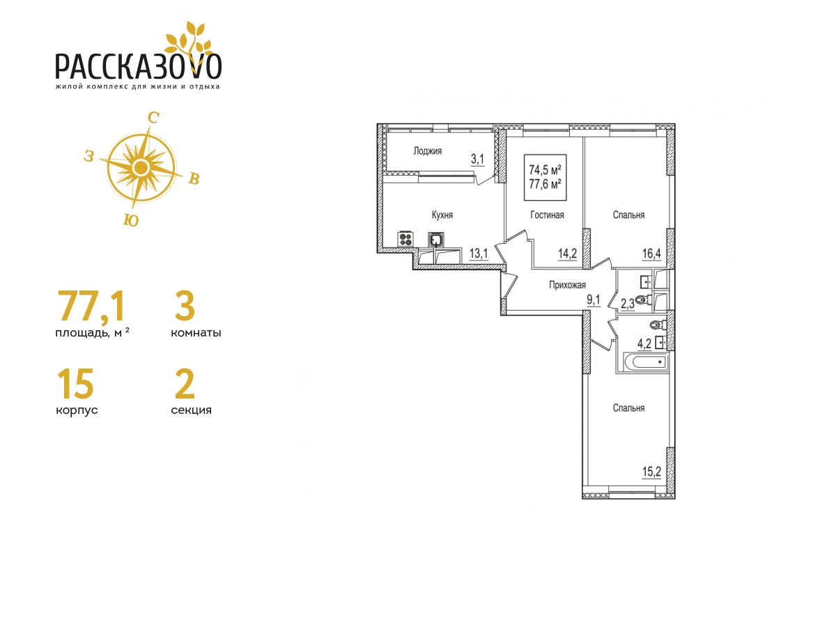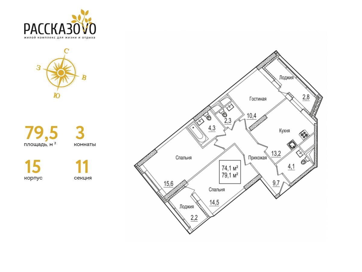 Трехкомнатные квартиры в ЖК «Рассказово»