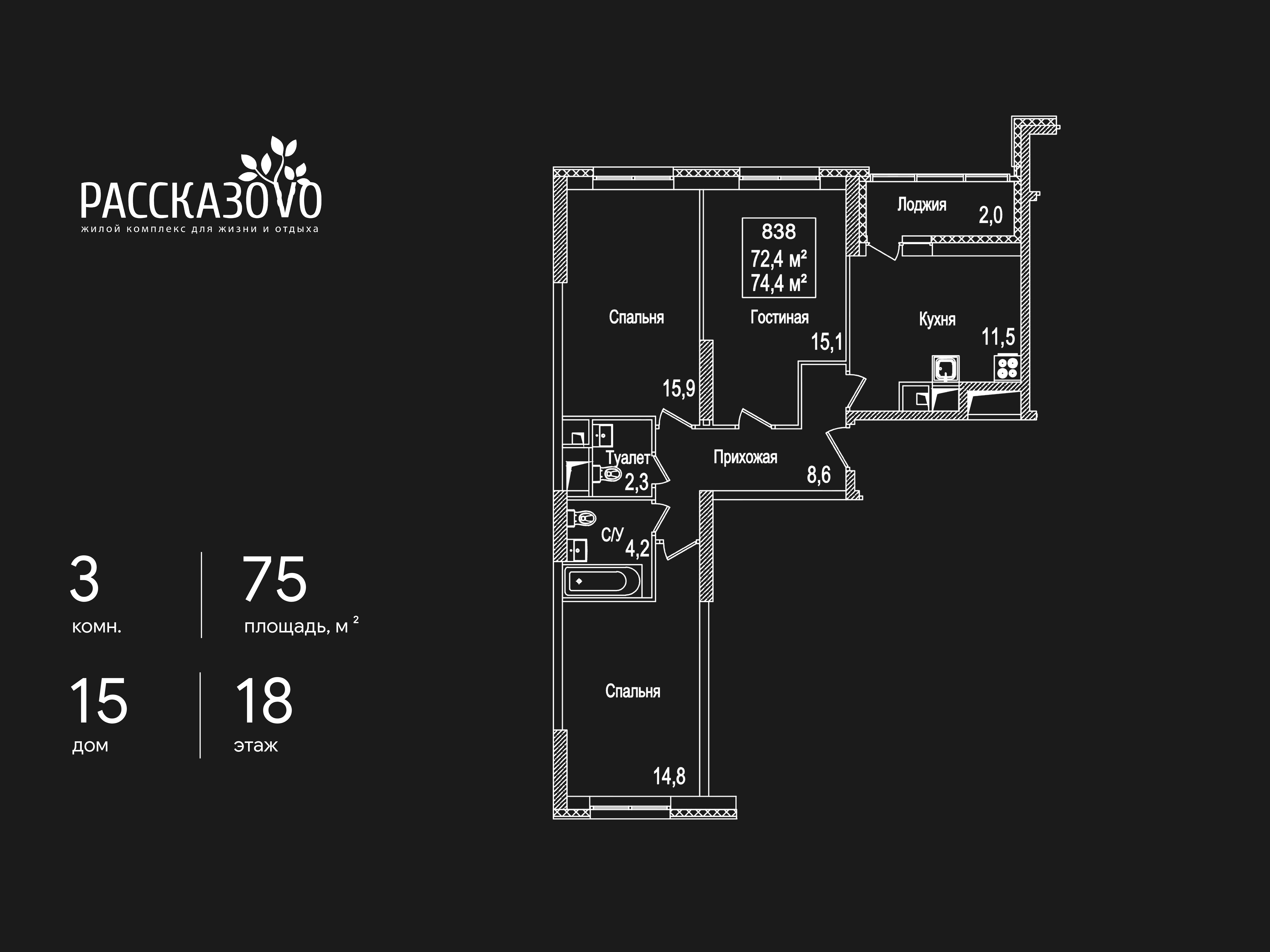 Трехкомнатные квартиры в ЖК «Рассказово»