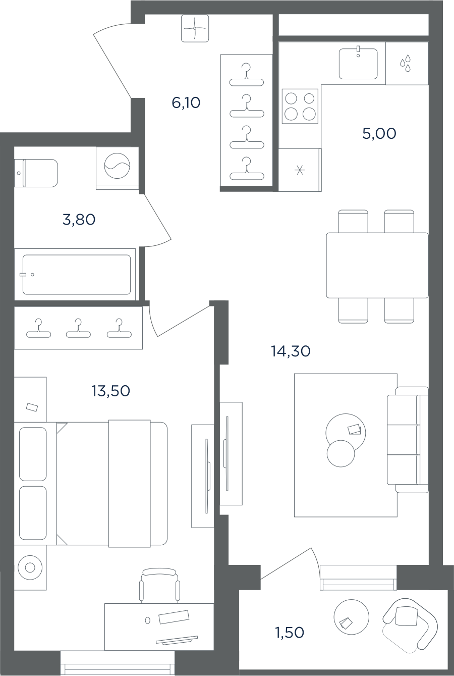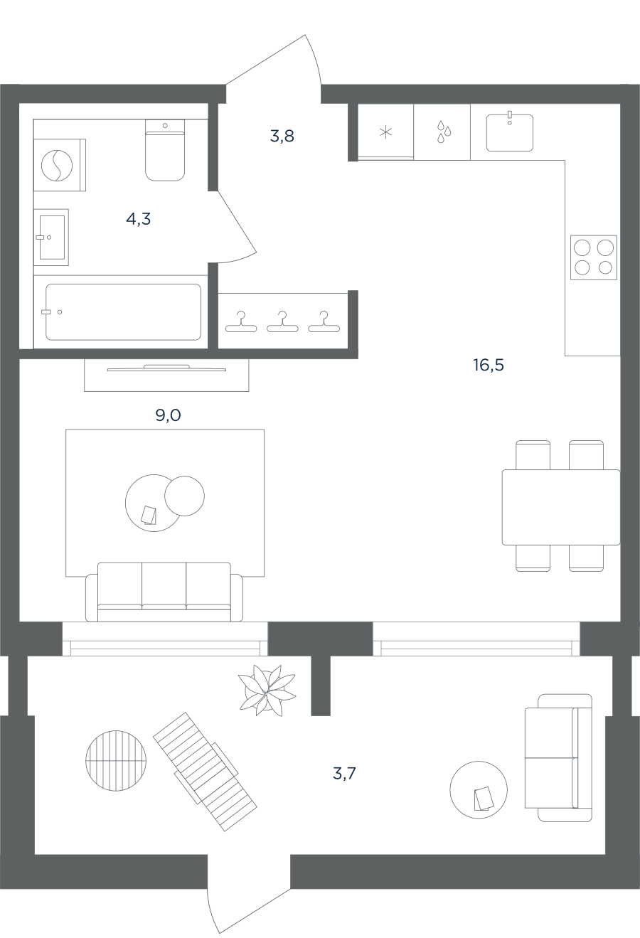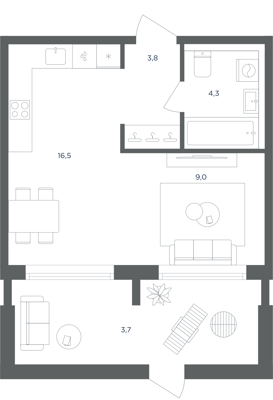Покупатели могут выбрать квартиры разных площадей и планировок. Это могут быть как квартиры, так и апартаменты площадью от 27 до 93 кв. м. Среди предложений есть квартиры евроформата. На последних этажах у всех квартир имеются видовые террасы. А в распоряжении жителей первых этажей — собственные участки придомовой территории.