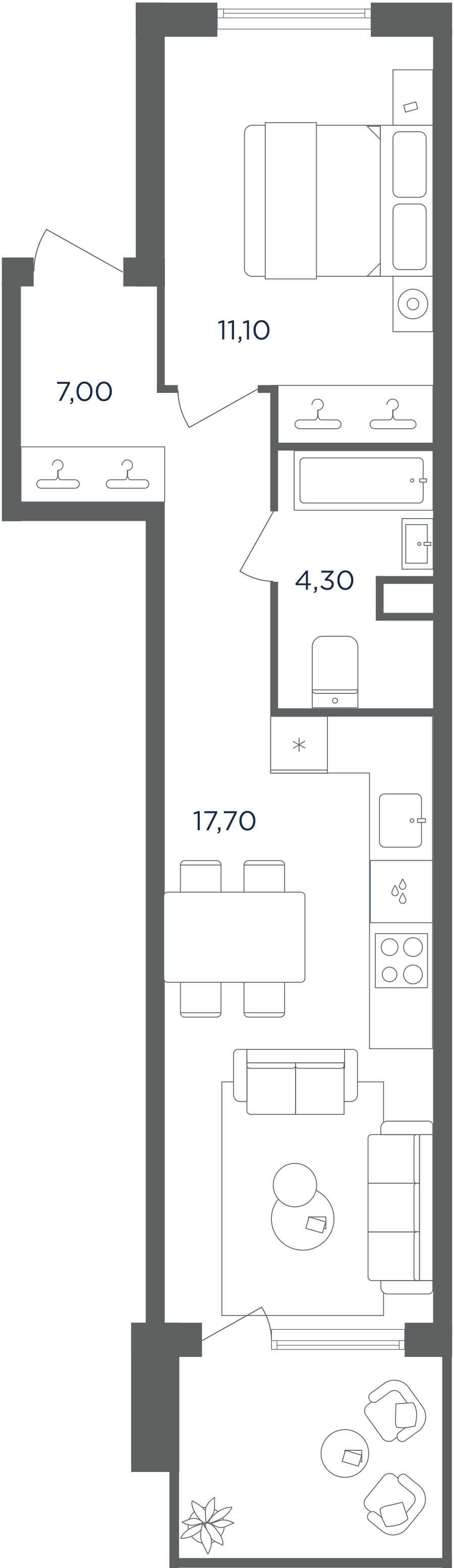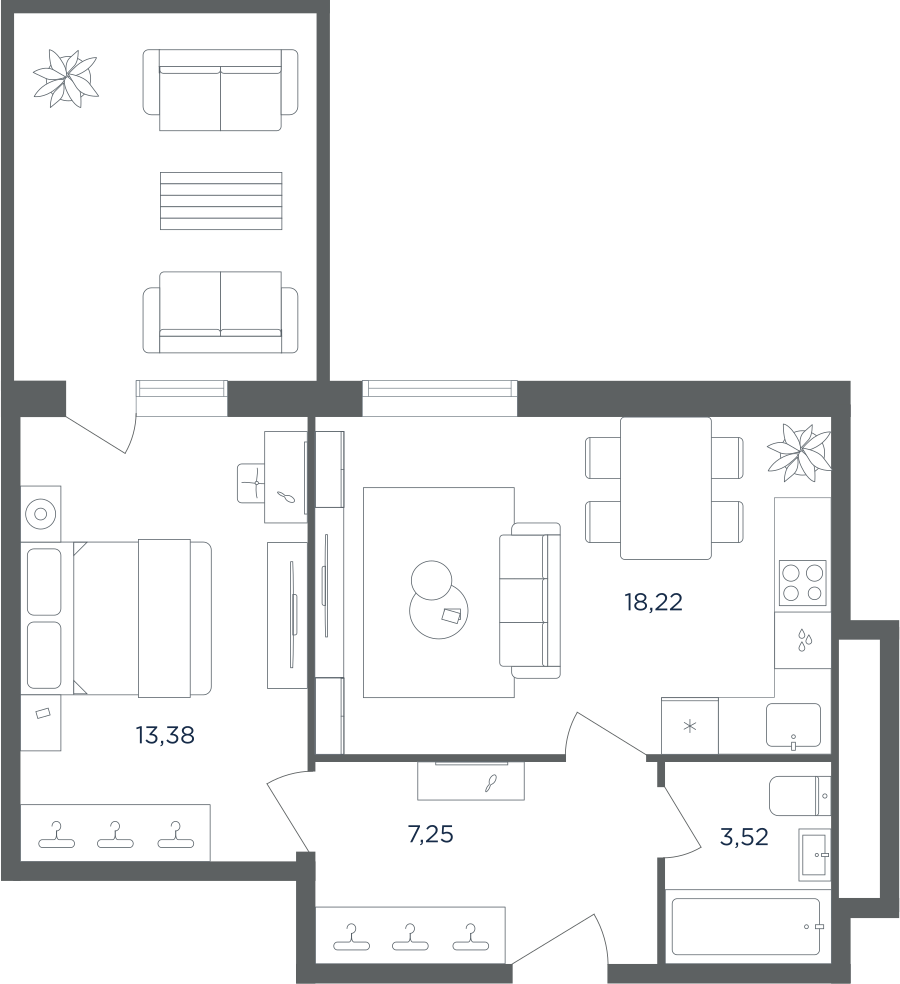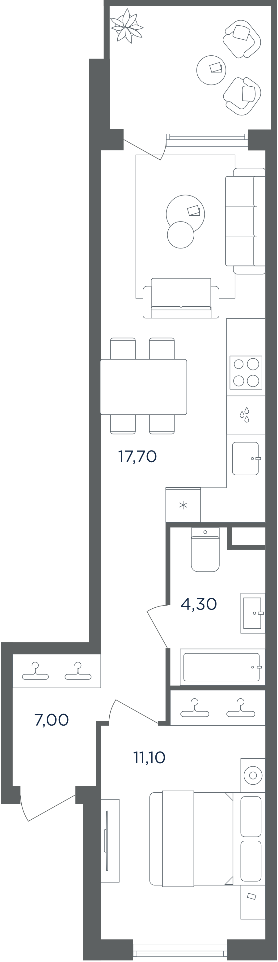 Покупатели могут выбрать квартиры разных площадей и планировок. Это могут быть как квартиры, так и апартаменты площадью от 27 до 93 кв. м. Среди предложений есть квартиры евроформата. На последних этажах у всех квартир имеются видовые террасы. А в распоряжении жителей первых этажей — собственные участки придомовой территории.