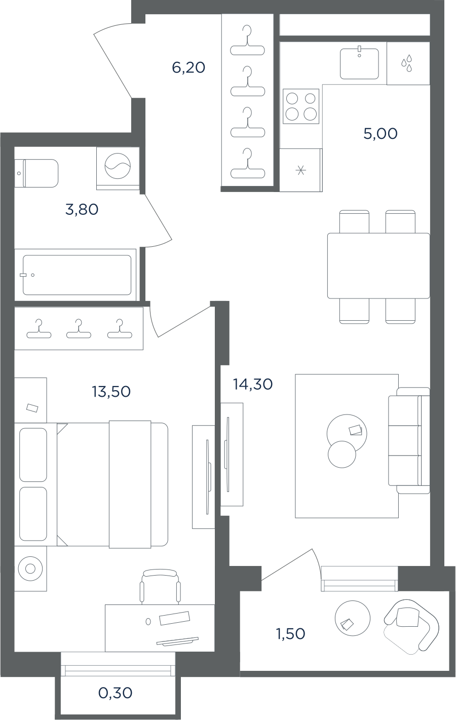 Покупатели могут выбрать квартиры разных площадей и планировок. Это могут быть как квартиры, так и апартаменты площадью от 27 до 93 кв. м. Среди предложений есть квартиры евроформата. На последних этажах у всех квартир имеются видовые террасы. А в распоряжении жителей первых этажей — собственные участки придомовой территории.