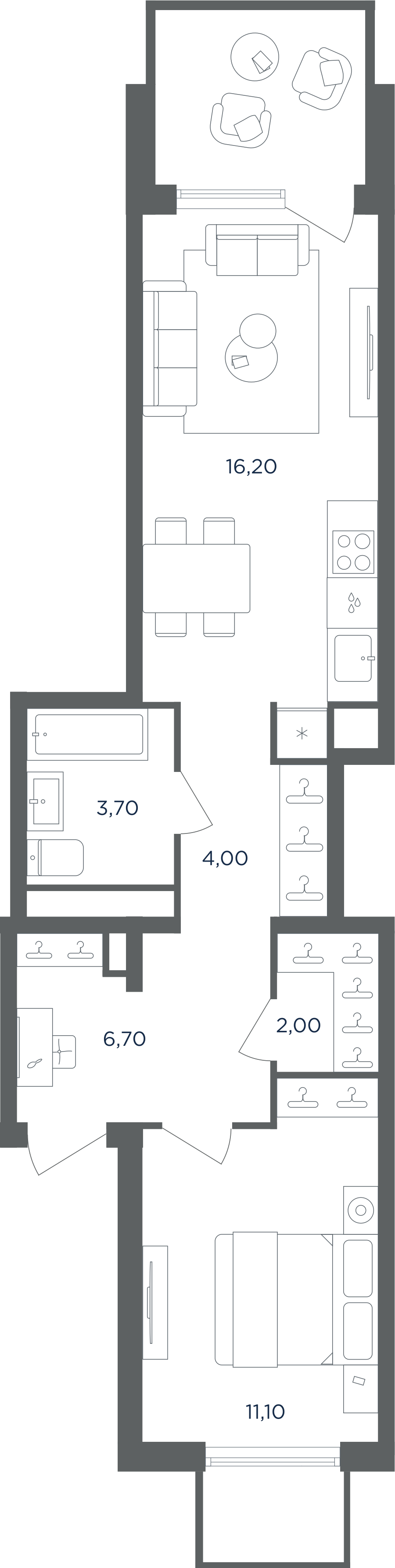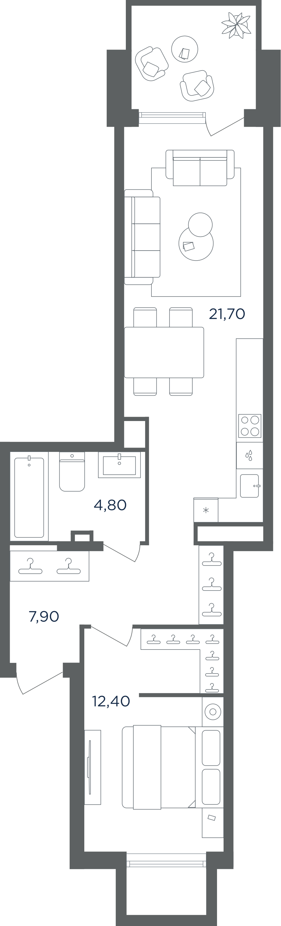 Покупатели могут выбрать квартиры разных площадей и планировок. Это могут быть как квартиры, так и апартаменты площадью от 27 до 93 кв. м. Среди предложений есть квартиры евроформата. На последних этажах у всех квартир имеются видовые террасы. А в распоряжении жителей первых этажей — собственные участки придомовой территории.