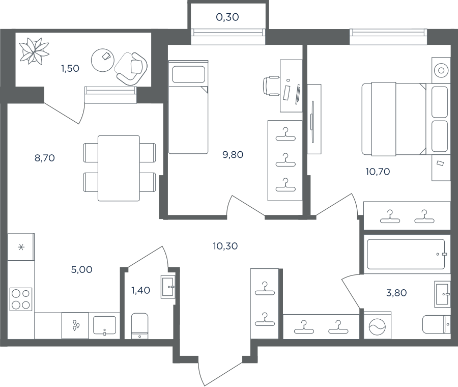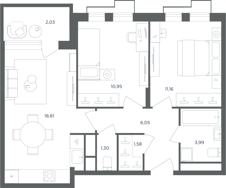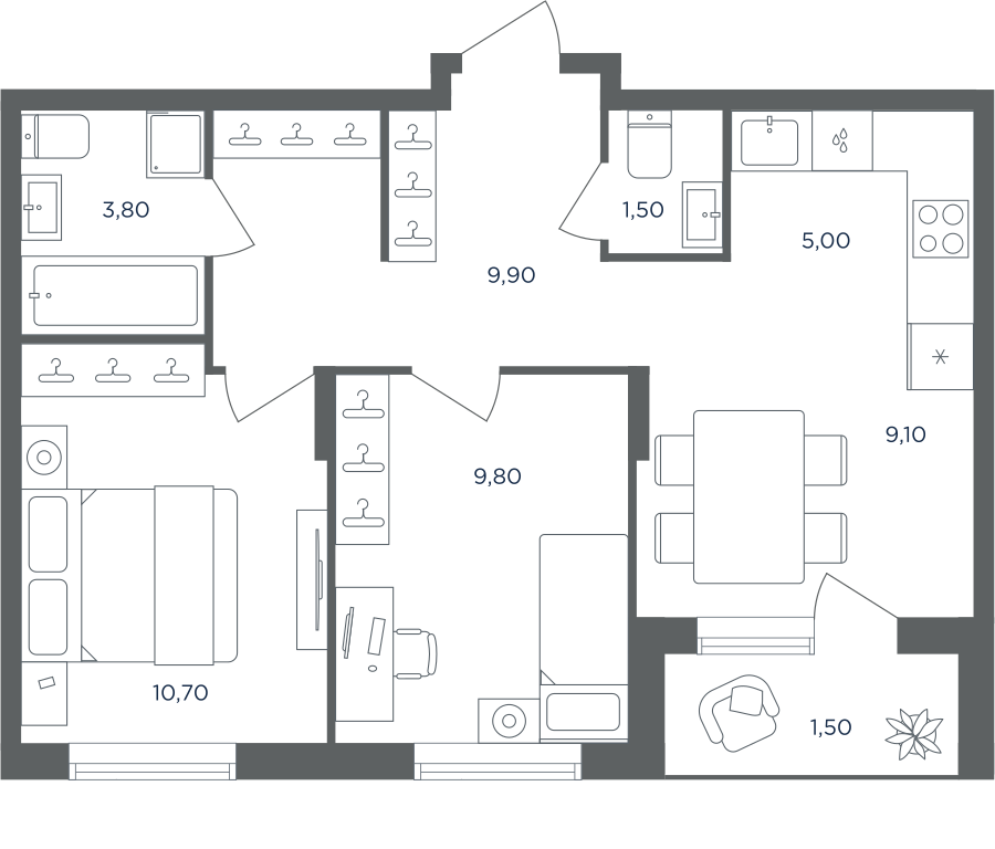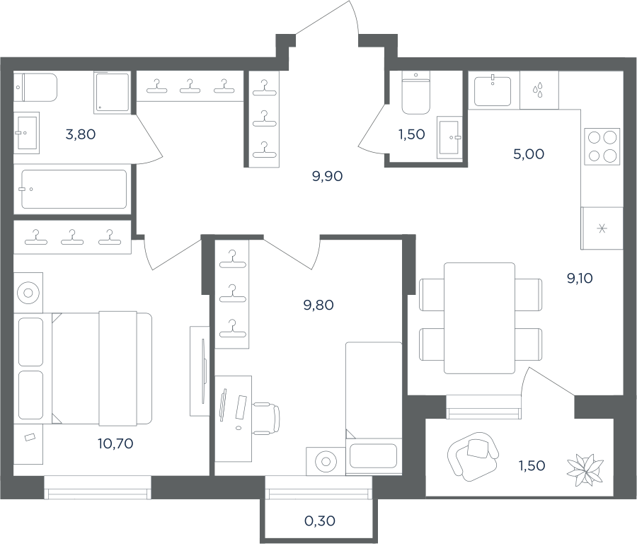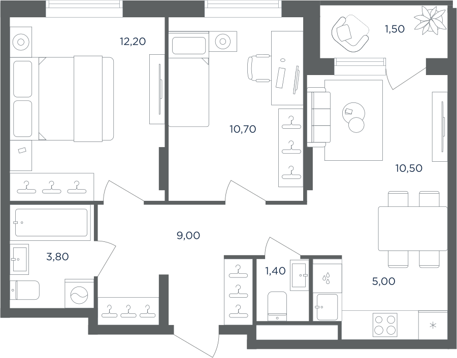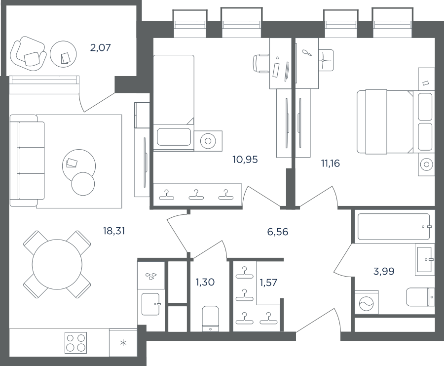 Покупатели могут выбрать квартиры разных площадей и планировок. Это могут быть как квартиры, так и апартаменты площадью от 27 до 93 кв. м. Среди предложений есть квартиры евроформата. На последних этажах у всех квартир имеются видовые террасы. А в распоряжении жителей первых этажей — собственные участки придомовой территории.