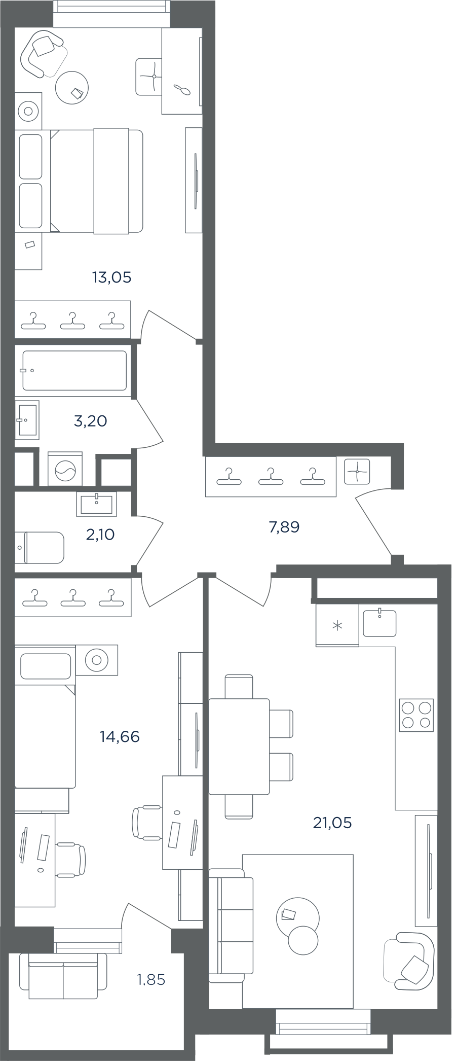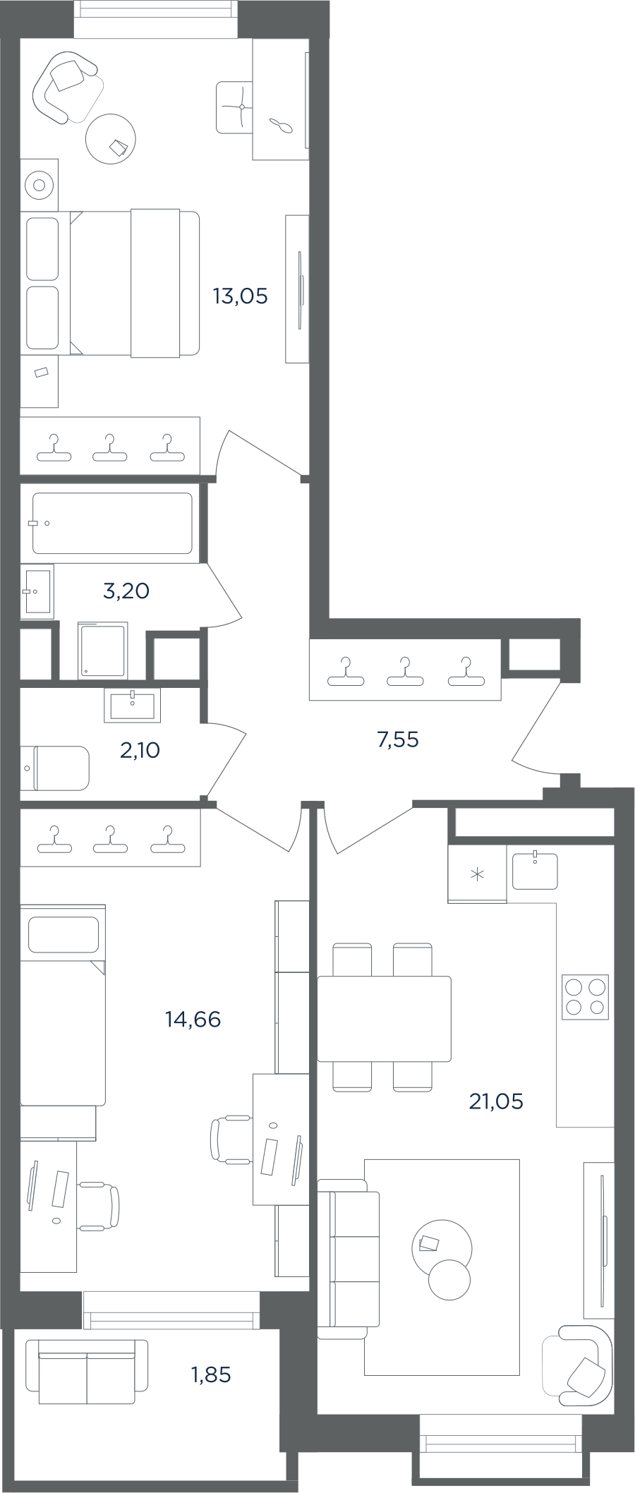 Покупатели могут выбрать квартиры разных площадей и планировок. Это могут быть как квартиры, так и апартаменты площадью от 27 до 93 кв. м. Среди предложений есть квартиры евроформата. На последних этажах у всех квартир имеются видовые террасы. А в распоряжении жителей первых этажей — собственные участки придомовой территории.