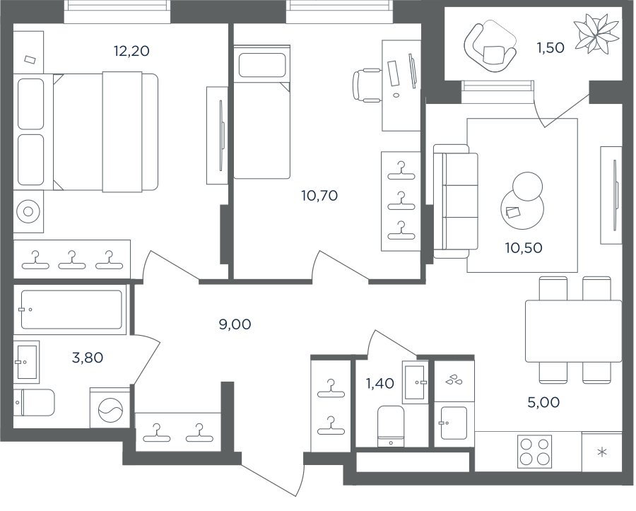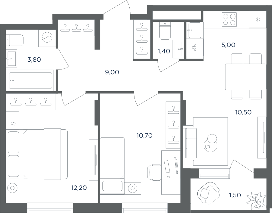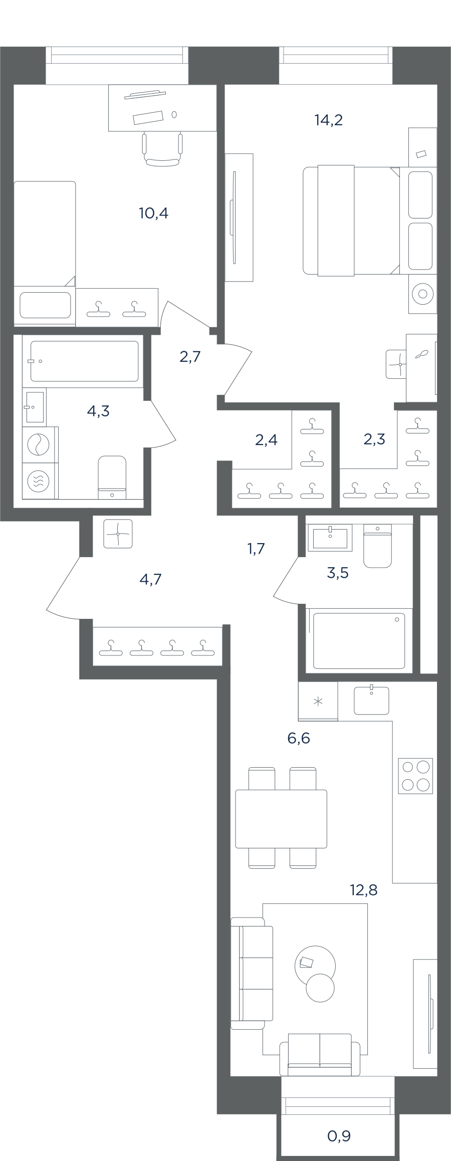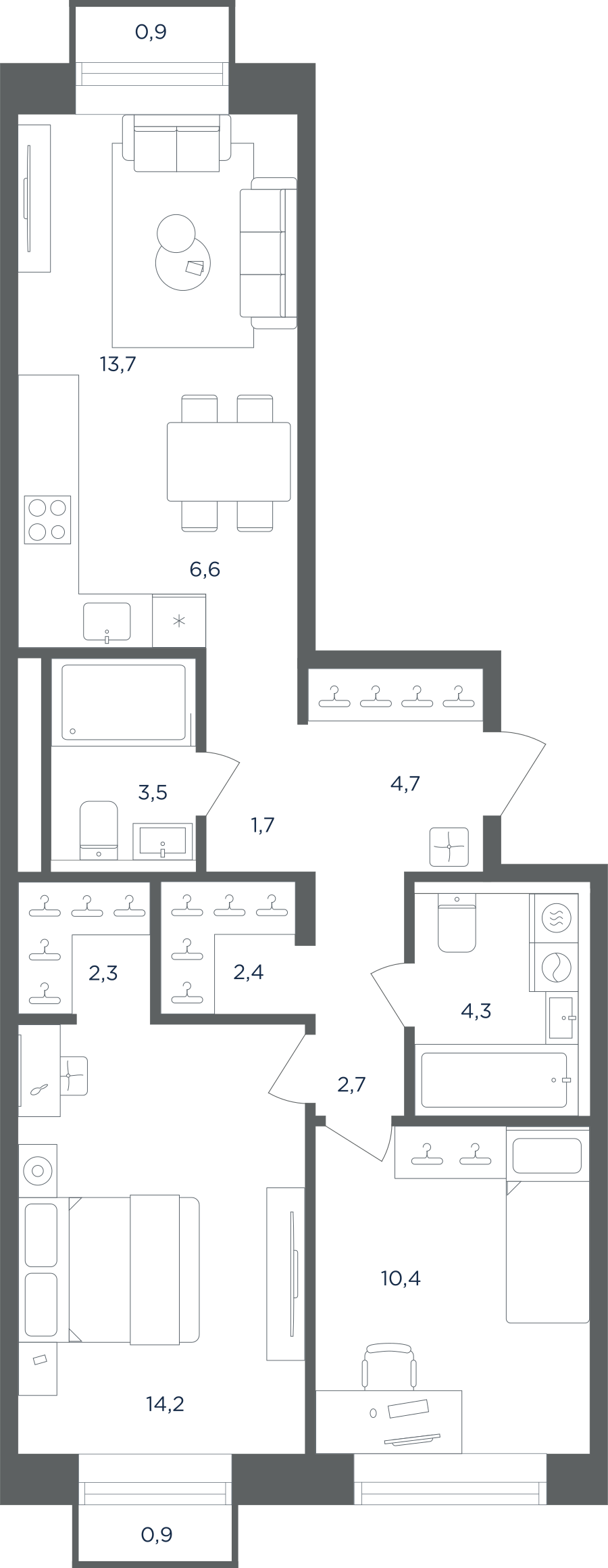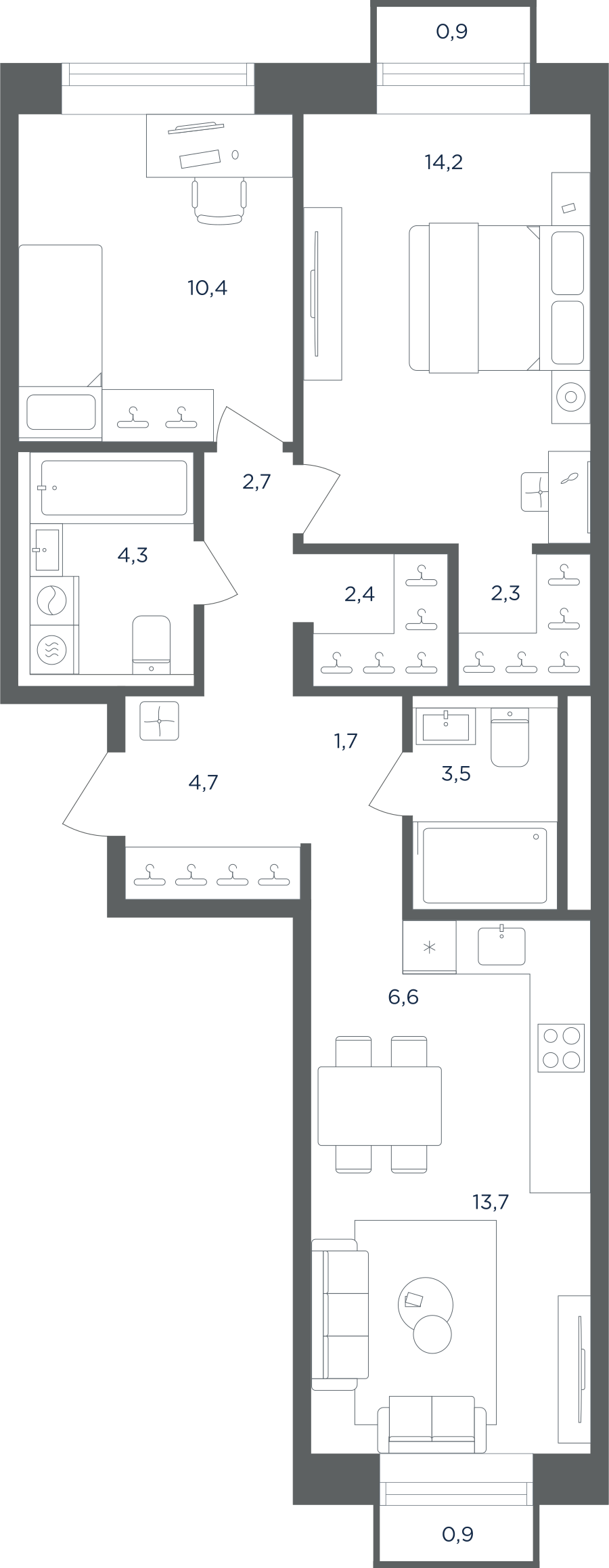 Покупатели могут выбрать квартиры разных площадей и планировок. Это могут быть как квартиры, так и апартаменты площадью от 27 до 93 кв. м. Среди предложений есть квартиры евроформата. На последних этажах у всех квартир имеются видовые террасы. А в распоряжении жителей первых этажей — собственные участки придомовой территории.