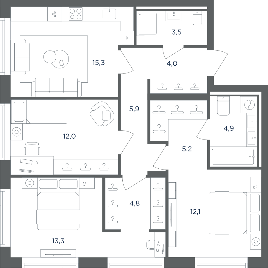 Трехкомнатные квартиры в ЖК Равновесие - страница 7