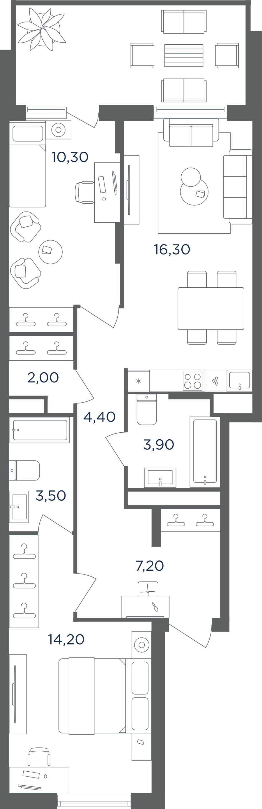 Покупатели могут выбрать квартиры разных площадей и планировок. Это могут быть как квартиры, так и апартаменты площадью от 27 до 93 кв. м. Среди предложений есть квартиры евроформата. На последних этажах у всех квартир имеются видовые террасы. А в распоряжении жителей первых этажей — собственные участки придомовой территории.