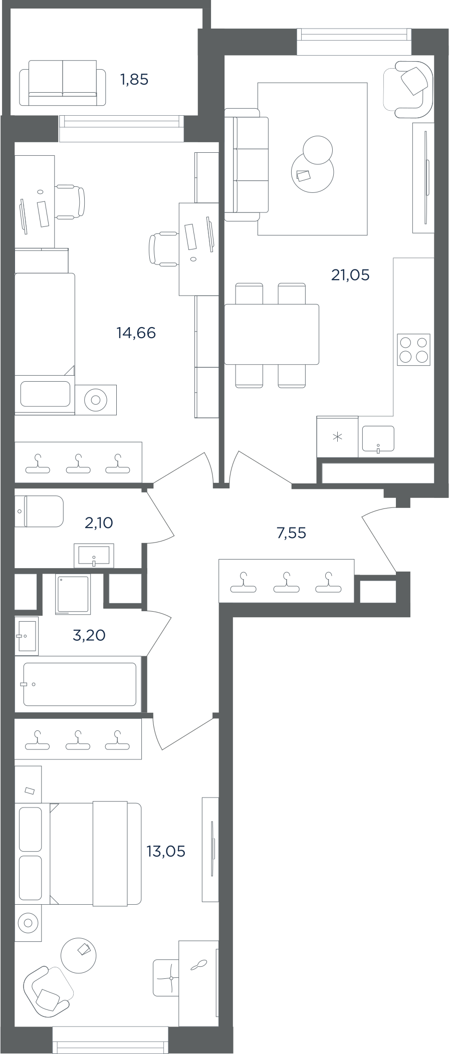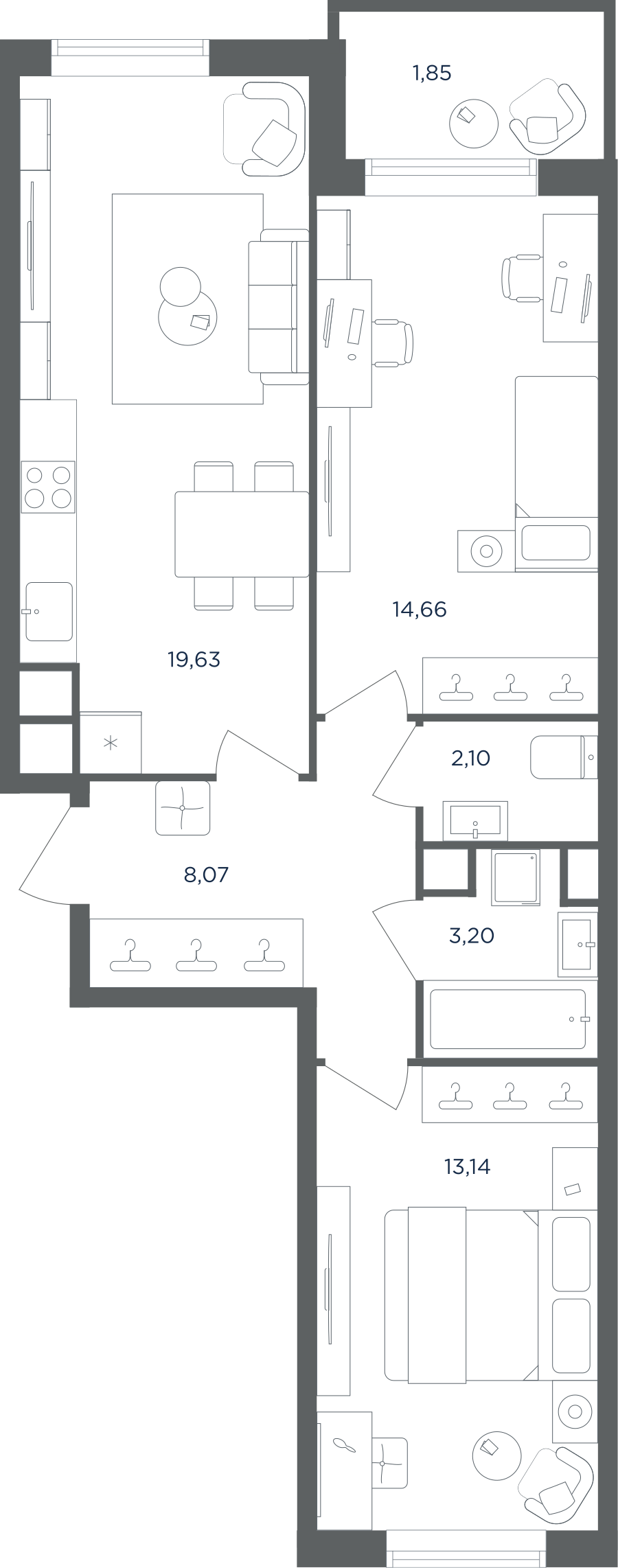Покупатели могут выбрать квартиры разных площадей и планировок. Это могут быть как квартиры, так и апартаменты площадью от 27 до 93 кв. м. Среди предложений есть квартиры евроформата. На последних этажах у всех квартир имеются видовые террасы. А в распоряжении жителей первых этажей — собственные участки придомовой территории.