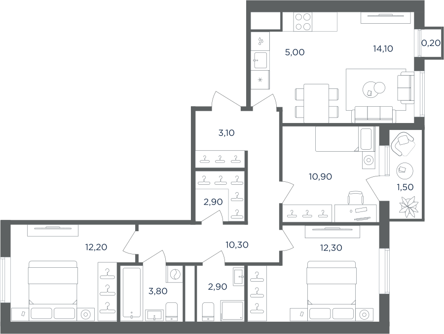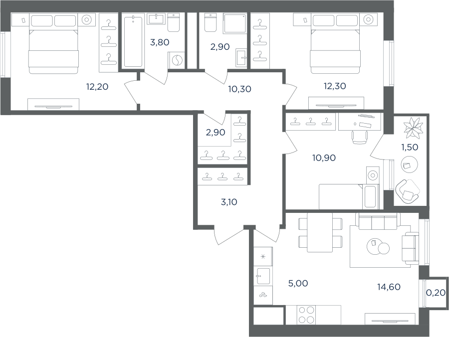 Покупатели могут выбрать квартиры разных площадей и планировок. Это могут быть как квартиры, так и апартаменты площадью от 27 до 93 кв. м. Среди предложений есть квартиры евроформата. На последних этажах у всех квартир имеются видовые террасы. А в распоряжении жителей первых этажей — собственные участки придомовой территории.