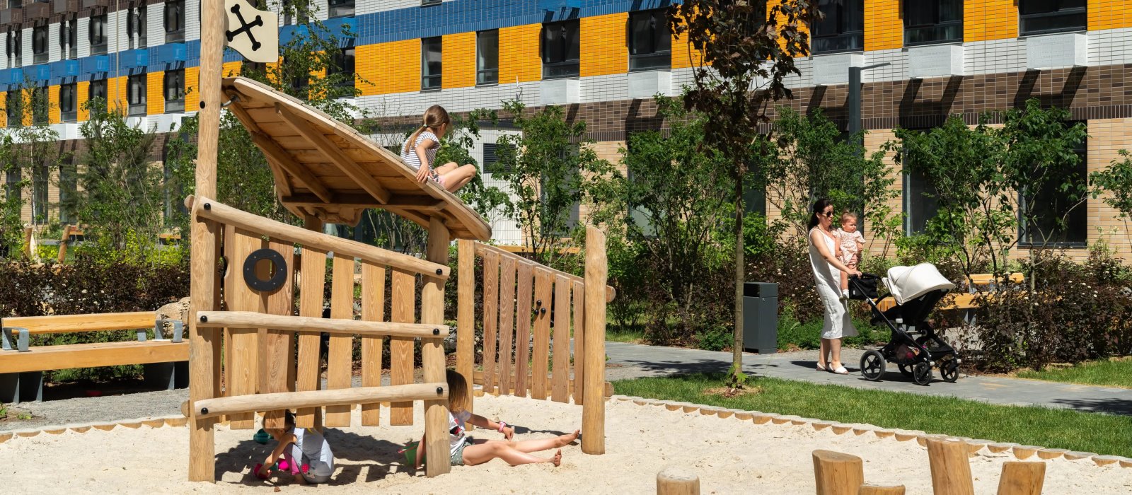 В жилой комплекс входят два детских сада, школа, детская и взрослая поликлиники. На общественном транспорте 20 минут до торговых центров «Аутлет Белая дача», «МЕГА Белая Дача» и гипермаркета «Глобус».